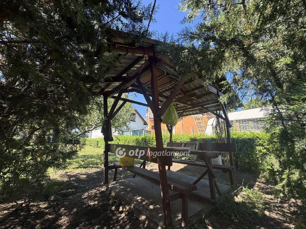 Nagy, gondozott a kert filagóriával, amely ideális a pihenésre és a kikapcsolódásra.