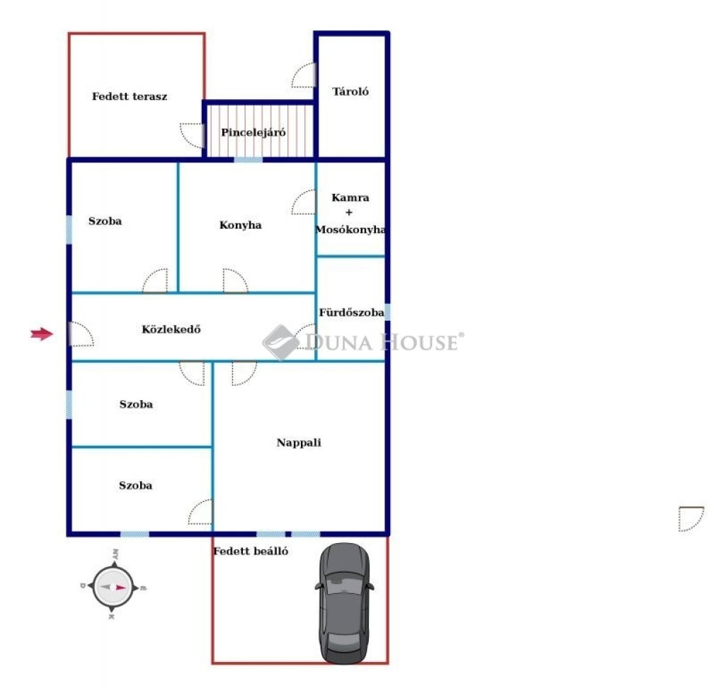 Fedett beálló + 2 autó számára parkolás
