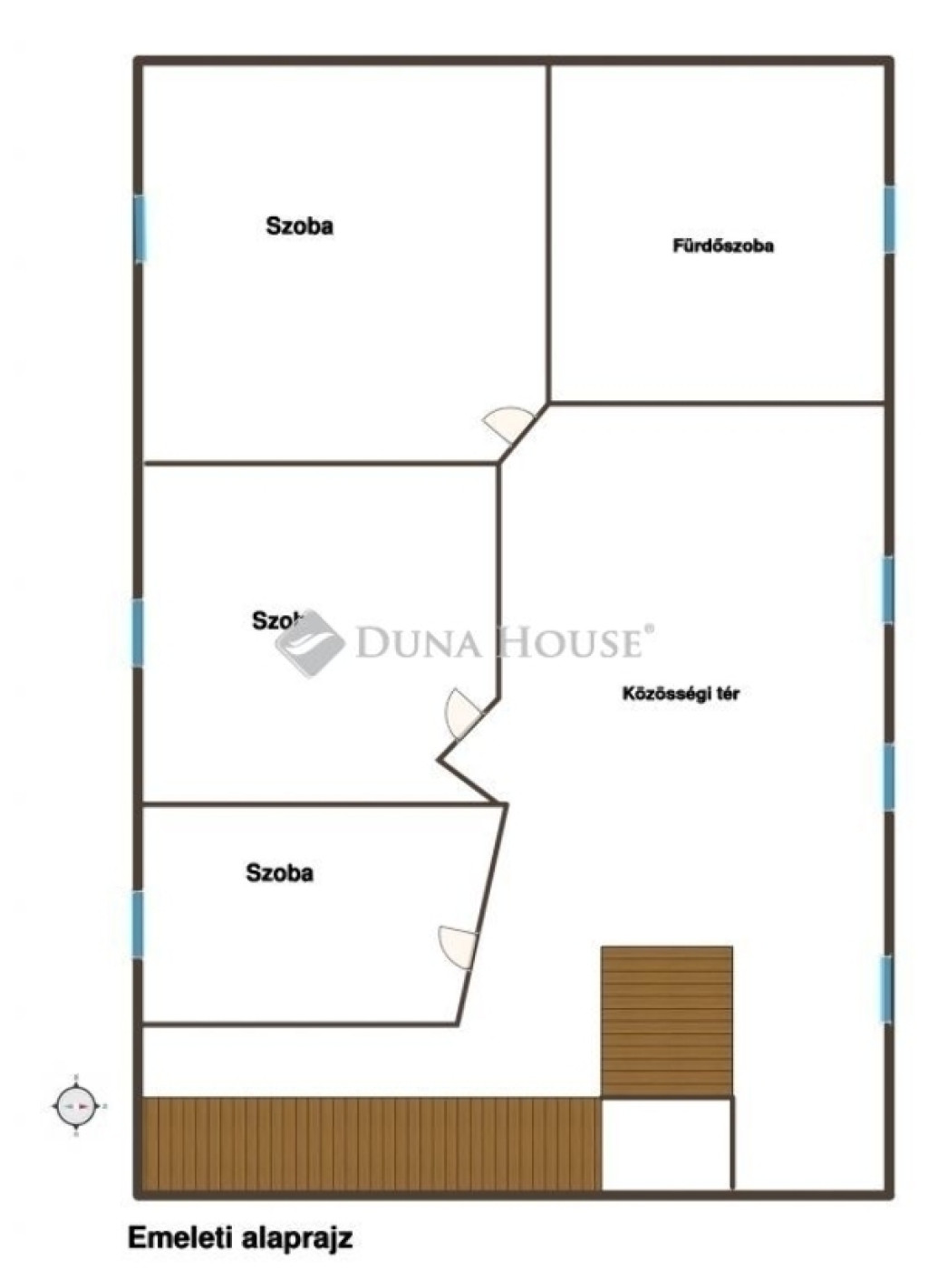- emelet: 3 külön nyíló félszoba, fürdőszoba WC-vel egy helyiségben, közlekedő, gardrób.