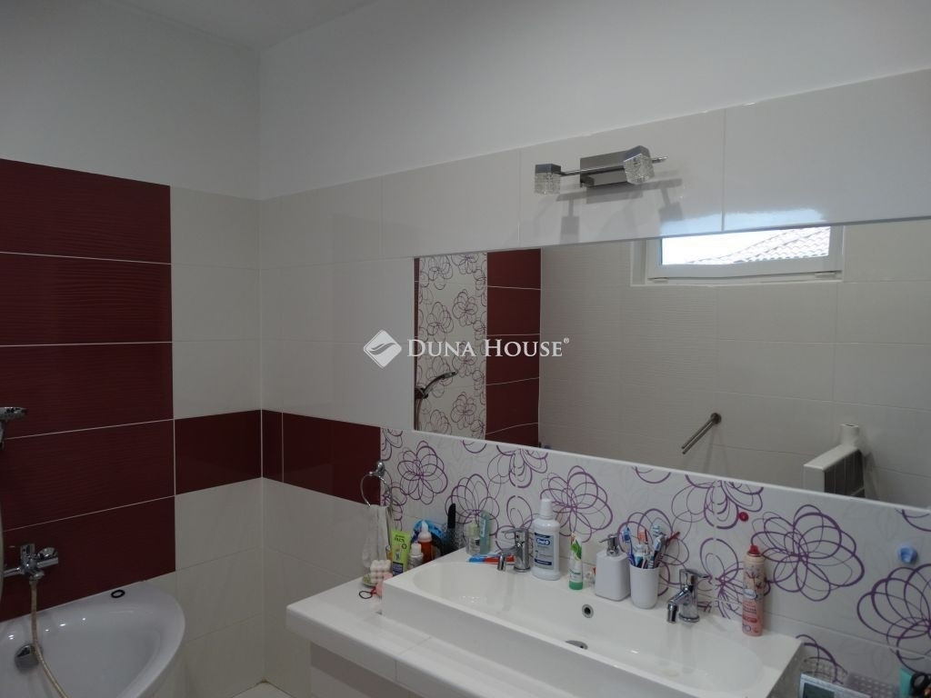 DebrecenAlsójózsán, a közkedvelt Józsa Liget lakóparkban, csendes, aszfaltozott utcában eladó egy önálló, kétszintes, modern megjelenésű családi ház gondozott, parkosított kerttel és fűtött medencével.Az ingatlan 2018-ban épült Porotherm téglából (30/38 cm), 15 cm-es hőszigeteléssel, korszerű, háromrétegű műanyag nyílászárókkal. Energetikai besorolása: AA+.A nettó 167 m²-es lakótér elrendezése: amerikai konyhás nappali + 5 hálószoba, 5 gardróbszoba, 2 fürdőszoba. A ház központi tere a tágas, világos nappaliétkező, amelyhez prémium minőségű, magasfényű, teljes gépesítéssel felszerelt konyha kapcsolódik. A beépített konyhabútor a vételár részét képezi.A földszinten 2 hálószoba gardróbbal, kamra, szélfogó, közlekedő, valamint háztartási helyiség található, ahol a hőtároló és az Immergas kondenzációs kazán kapott helyet. Az emeleten 3 külön nyíló hálószoba került kialakításra mindegyik saját gardróbbal , továbbá egy tágas, sarokkádas fürdőszoba.Az otthon melegéről gázcirkó fűtés gondoskodik padlófűtés és radiátoros hőleadás formájában, kiegészítve hűtő-fűtő klímával. A 4,95 kW teljesítményű, szaldós elszámolású napelemes rendszer biztosítja az ingatlan teljes áramigényét, akár elektromos autó rendszeres töltése mellett is. Elektromos autótöltő kiépítésre került. A medence vize hőszivattyúval fűtött. A havi gázfogyasztás rendkívül alacsony.A 635 m²-es, parkosított telek automata öntözőrendszerrel, csepegtetővel és esővíz-szikkasztóval ellátott. A kertben kültéri medence, fedett bográcsozó- és szalonnasütő hely, játszótér, valamint egy 10 m²-es, betonalapra épített kisház található. A hátsó kertre néző, 20 m²-es fedett terasz ideális helyszín családi és baráti összejövetelekhez.Az utcafronti, 25 m²-es egyállásos garázs közvetlen bejutást biztosít a házba.Ez az ingatlan ideális választás mindazok számára, akik Debrecen egyik legkedveltebb kertvárosi részén, modern műszaki tartalommal, alacsony fenntartási költséggel és valódi élettérrel rendelkező, igényes családi otthont keresnek.