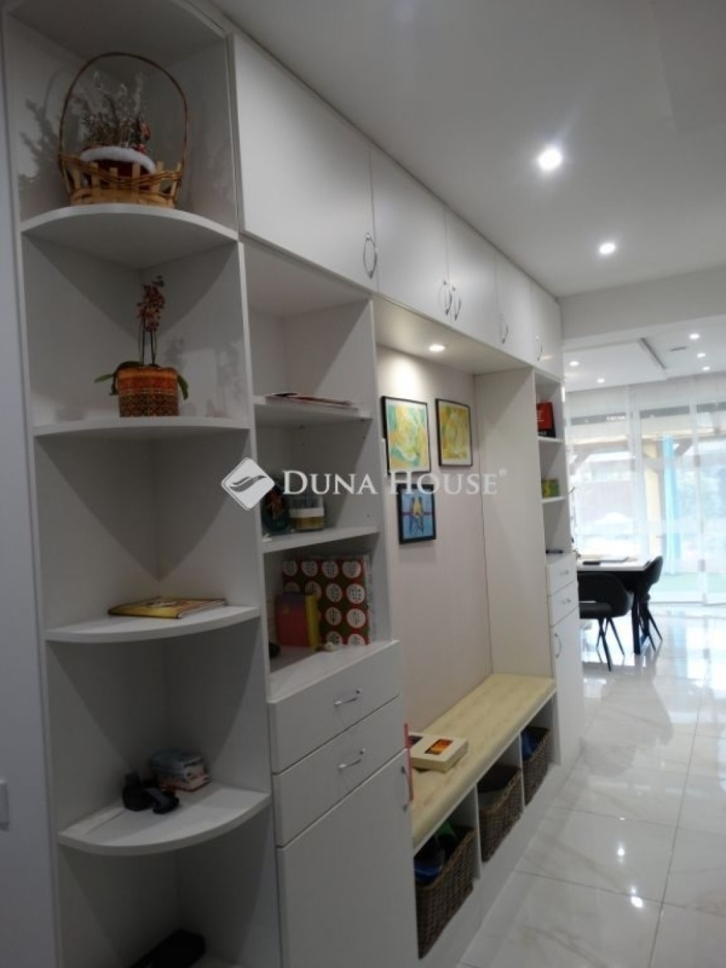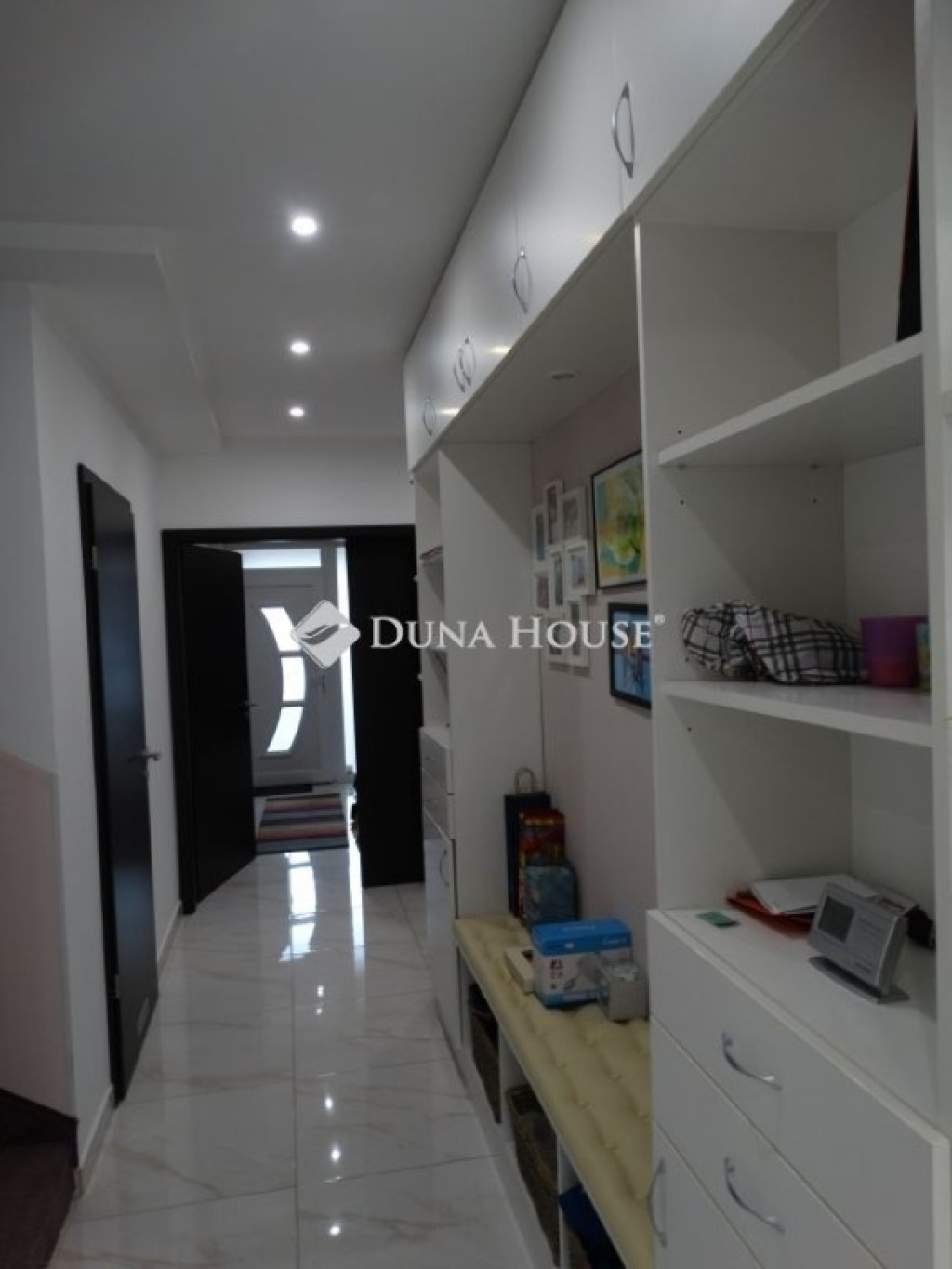 A nettó 167 m²-es lakótér elrendezése: amerikai konyhás nappali + 5 hálószoba, 5 gardróbszoba, 2 fürdőszoba. A ház központi tere a tágas, világos nappaliétkező, amelyhez prémium minőségű, magasfényű, teljes gépesítéssel felszerelt konyha kapcsolódik. A beépített konyhabútor a vételár részét képezi.