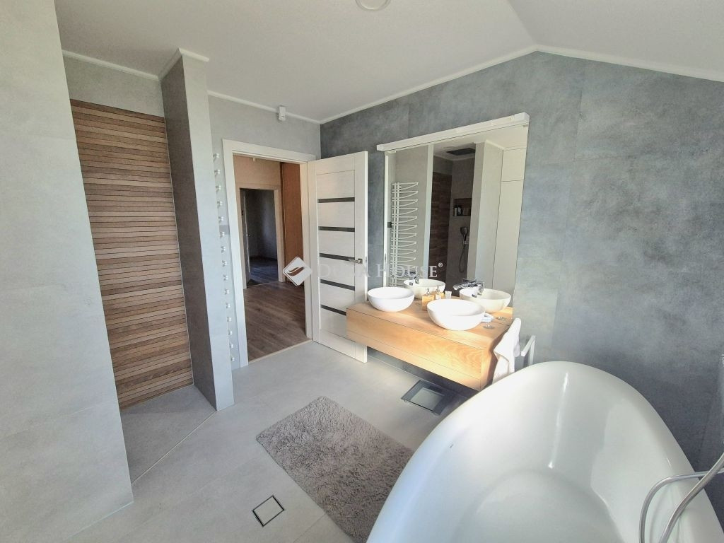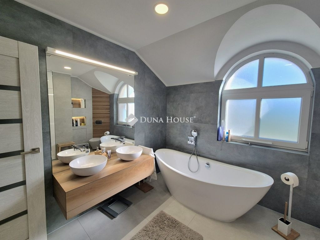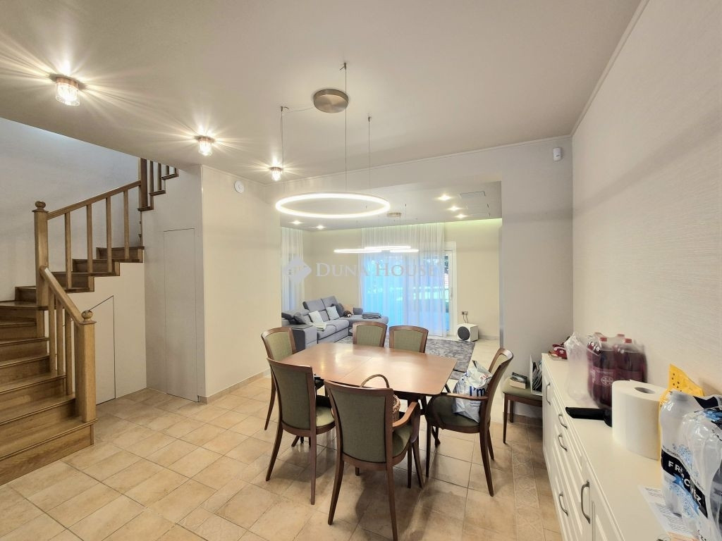 Exkluzív sorházi lakás a debreceni Liget-lakóparkban eladó.Eladásra kínálom Debrecen Liget I. lakóparkjában, játszótérrel, teniszpályával, sportpályával, 24 órás állandó portaszolgálattal, beléptető rendszerrel ellátott 180 m2-es, kétszintes, hőszigetelt, napelemmel ellátott, riasztóval rendelkező sorházi lakást, amely a modern elegancia és a praktikum tökéletes harmóniája.A szomszédokkal csak a garázs érintkezik.A ház 2006-ban épült és 380 nm-es telken helyezkedik el.A ház:- az összes nyílászáró 3 rétegű műanyag nyílászáróval rendelkezik- a házban az összes redőny alumínium, távirányítós vezérlésű, motoros redőny,- szúnyogháló mindenhol- 2 db klíma gondoskodik az épület hűtéséről, mely telefonról vezérelhető,- gázkazán, illetve elektromos kazán, padlófűtés- 10 KW napelem rendszer lett kiépítve,- riasztó- elektromos autótöltő (3x16 a) lett kiépítve- hőszigetelt 30-as téglafalak + hőszigetelés,- Dupla garázs, mely csempézett, vízvételi lehetőséggel, padlófűtéssel, és egy wc-vel rendelkezik,- az ingatlanhoz közvetlenül kapcsolódik egy téliesített fedett terasz tetőablakokkal és nyitható üveggel zárt (25 nm), amely fűthető, klímával, és konyhaszigettel rendelkezik. A Terasz üveggel fedett, mely igény esetén teljesen kinyitható.- továbbá egy nyitott, azonban fedett terasz is megtalálható, mely 20nm.Elosztása:A lakás földszintjén található előszoba, WC, kamra, tároló, valamint nagy nappali, konyha és étkező egy légtérben.Az emeleten három hálószoba, amelyek nem csapottak, nagy kádas és zuhanyzós fürdőszoba WC-vel, valamint egy hall és egy gardróbszoba.A nappaliból vagy a fedett teraszról kilépve a parkosított, 200 m2-es kert automataöntözéssel, gyönyörű növényzettel rendelkezik. Található még a kertben egy épített bográcsozó, grillező.A házhoz kapcsolódik még egy előkert, valamint egy elő terasz (8nm), illetve a garázs előtt még egy gépkocsi tárolására alkalmas terület található.Az ingatlan 1/1 tulajdonban van, valamint per és terhementes.
