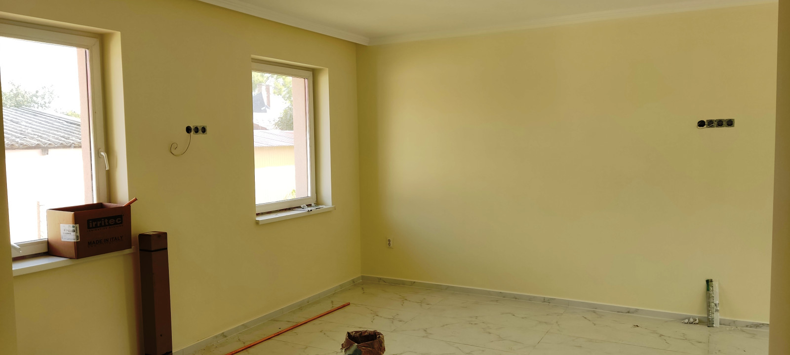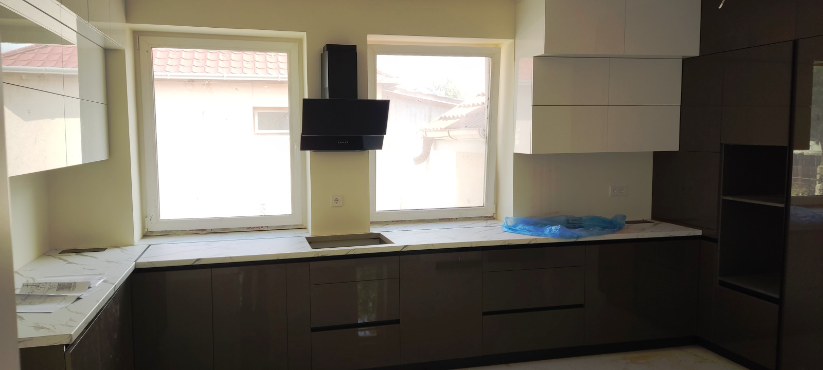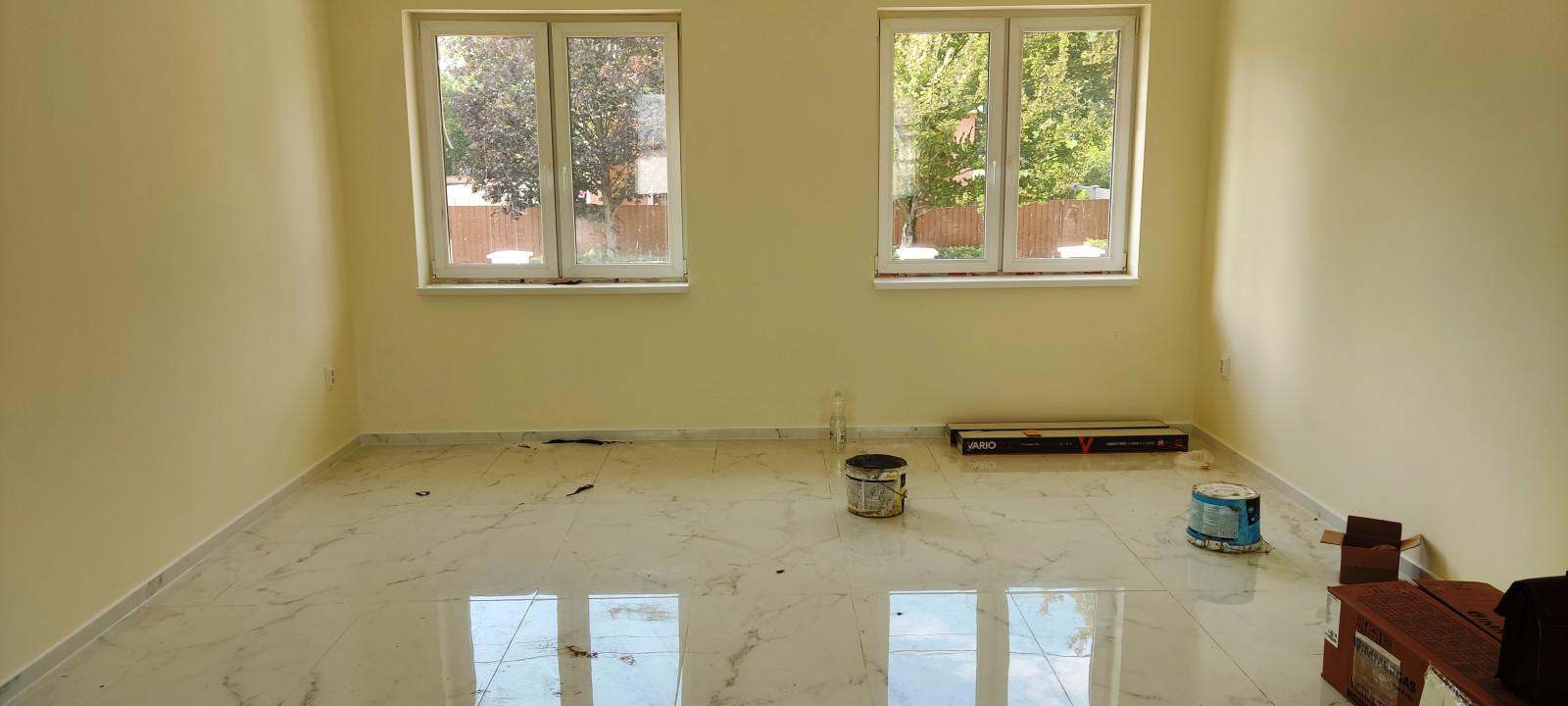 Deberen Csapókert Geréby telep Katalin utcánál 135 m2-es új építésű nappali és 3 szobás földszintes ház 18 m2-es garázzsal 555 m2 telken eladó. Modern beépített konyhaszekrény az árban benne van. Márványburkolatos amerikai konyhás nappali és márványburkolatos fürdőszoba, mosókonyha, spájz adják a kényelmet. 1 hónapon belül költözhető.