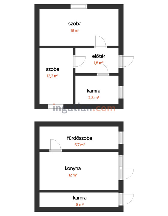 Az első ház B30-as téglából épült, benne két szoba, előszoba és kamra kapott helyet, gázkonvektoros fűtéssel.