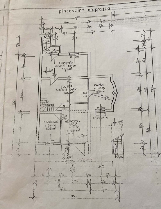 A ház alatt 68 nm nagy pince, egyik fele tároló, másik része garázsként funkcionál.