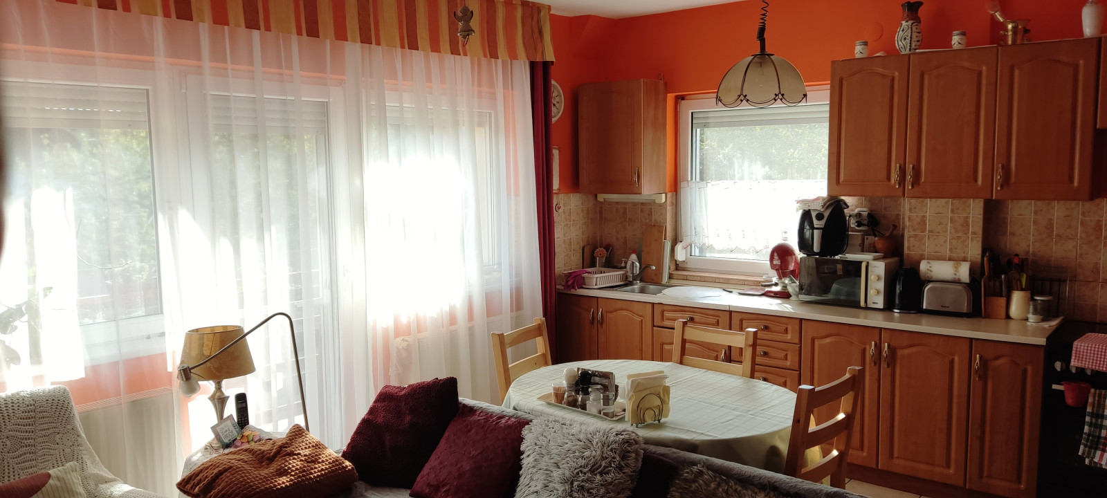 Debrecen Csapókert Liget térnél 109 m2-es, nappali és 3 szobás 20 éves szélső sorház gazázzsal 200 telekkel eladó. 2 terasz és 1 db erkély tartozik hozzá. A garázson kívűl még 2 autó parkolására alkalmas beállási lehetőség van. Saját füves terület furott kútról öntözve. Kegészítő helyiségek:gardróbszoba, spájz, 12 m2 kazánház kondenzációs kazánnal, dolgozó szoba.Extrák:klíma, körbenapozott csendes madárcsicsergős környezet és a Liget tér közelsége garancia a jó közérzethez. 15 cm szigeteléssel és 20 000 Ft-os téli gázszámlával takarékos fenttartású ingatlan.