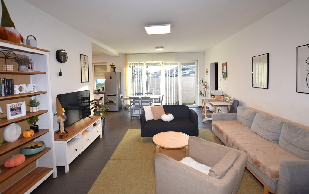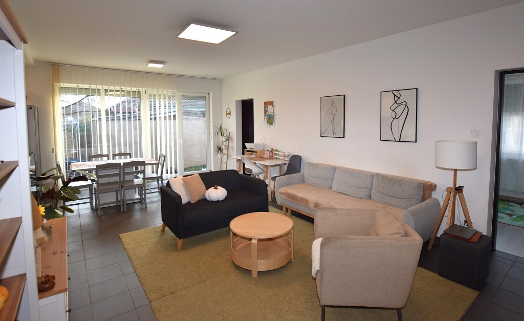- tágas világos nappali, közvetlen terasz kapcsolattal