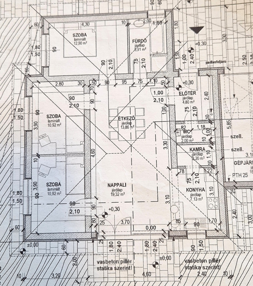 - nappaliban padlófűtés, szobákban radiátor hő leadással
