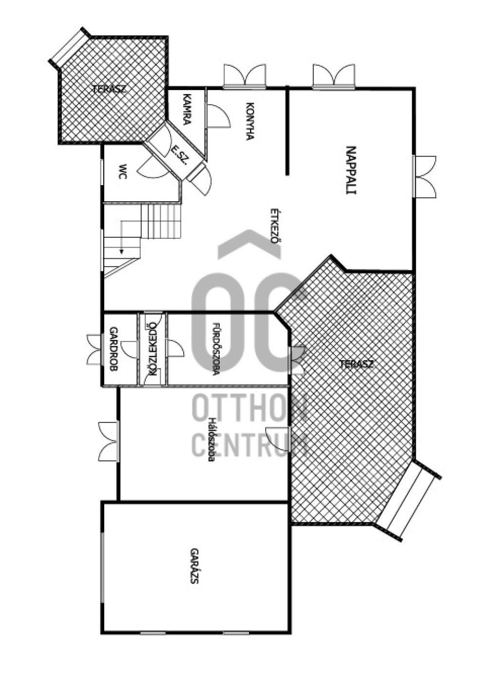 Praktikus tér kialakítása, sok ablaka miatt világos, kellemes hangulatú ingatlan. Többgyermekes családok számára kiváló választás, hiszen a tágas amerikai konyhás nappali 50 nm feletti, ahonnan közvetlen kijárat van a teraszra.