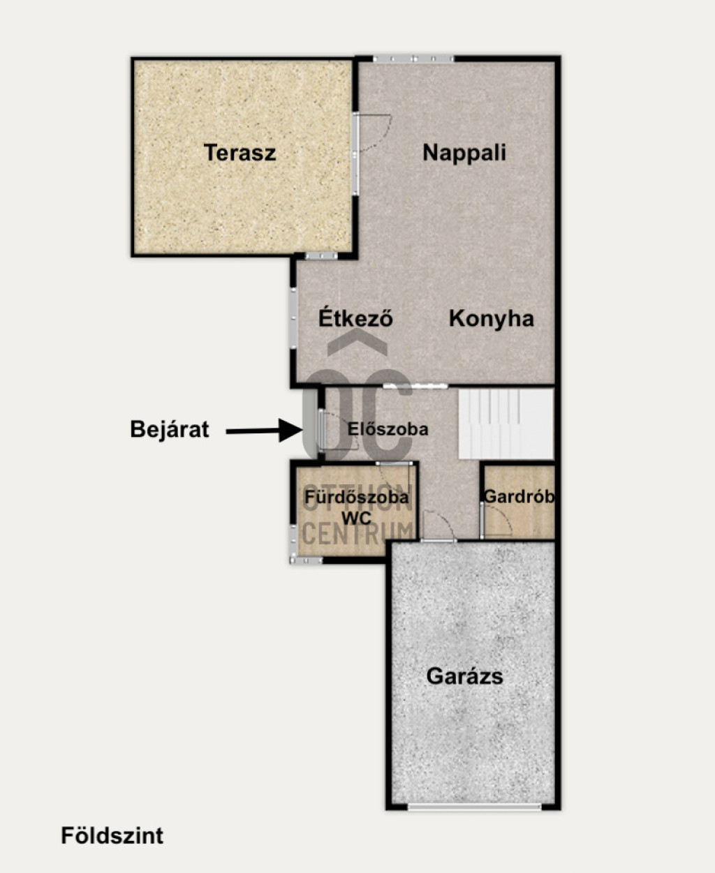 - nappaliból nyíló, 20 m²-es fedett terasz