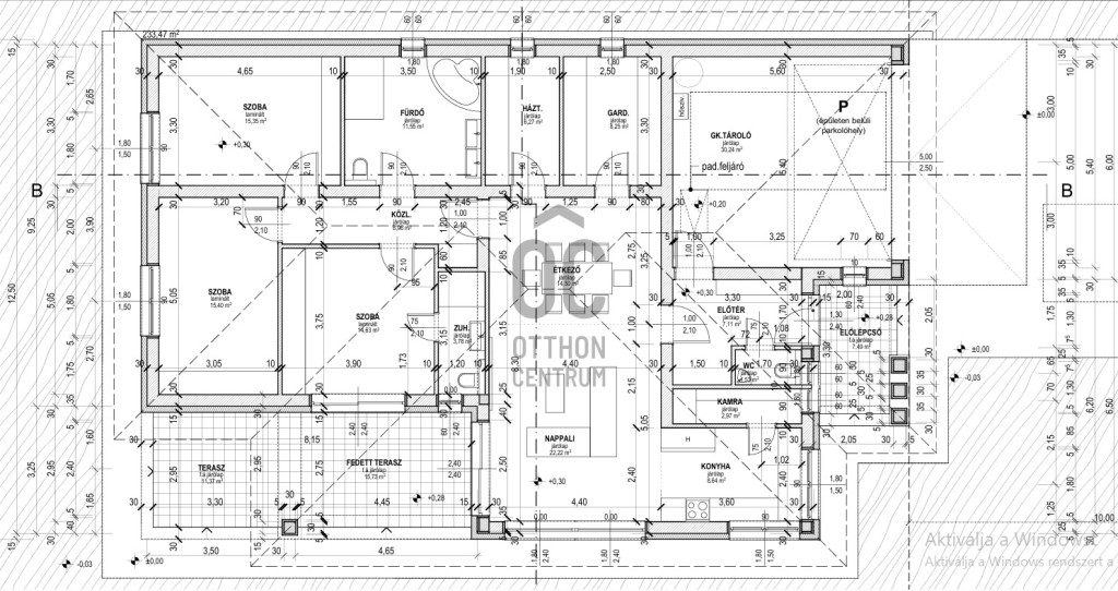 - 934 nm-s telken kapott helyet a nettó 169 nm-s + 27 nm részben fedett terasszal rendelkező otthon