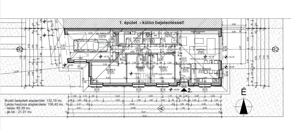 Az ingatlan beépített területe : 108 m2 + egy : 15 m2 - es terasz tartozik hozzá.