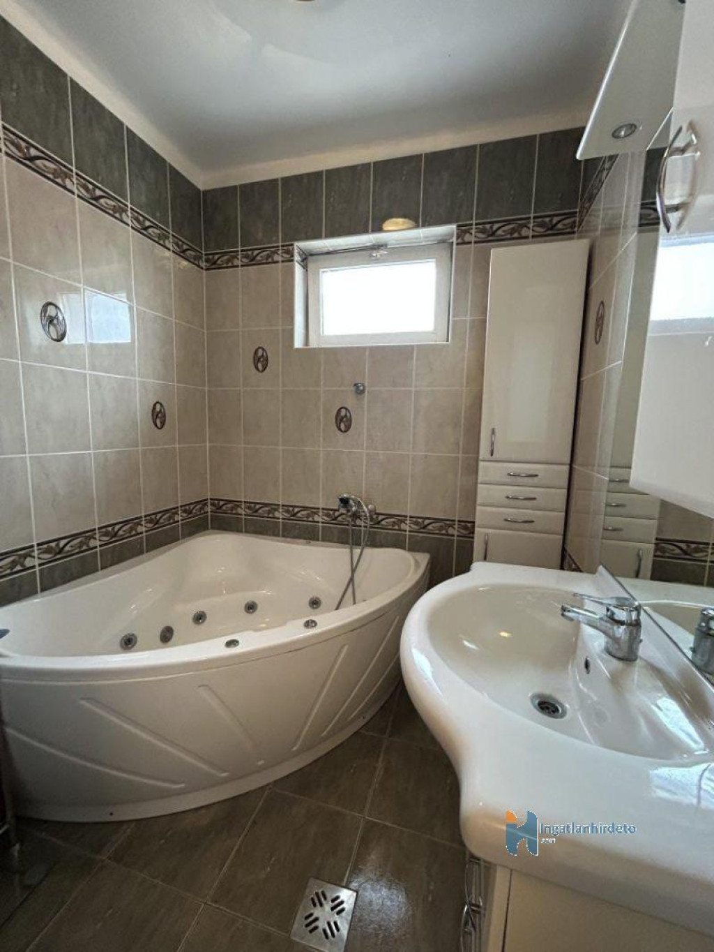 A háromszintes kialakítás lehetőséget ad arra, hogy együtt, mégis külön éljenek a generációk. A ház összesen 150 m² hasznos lakóteret kínál, ami egy mai építésű ingatlannál ritkán tapasztalható térérzetet ad. A konyha tágas, jól bútorozható, a spájz pedig nem luxus, hanem a mindennapok praktikus része. Két fürdőszoba és a külön WC leveszi a reggeli rohanás terhét egy nagyobb család válláról.