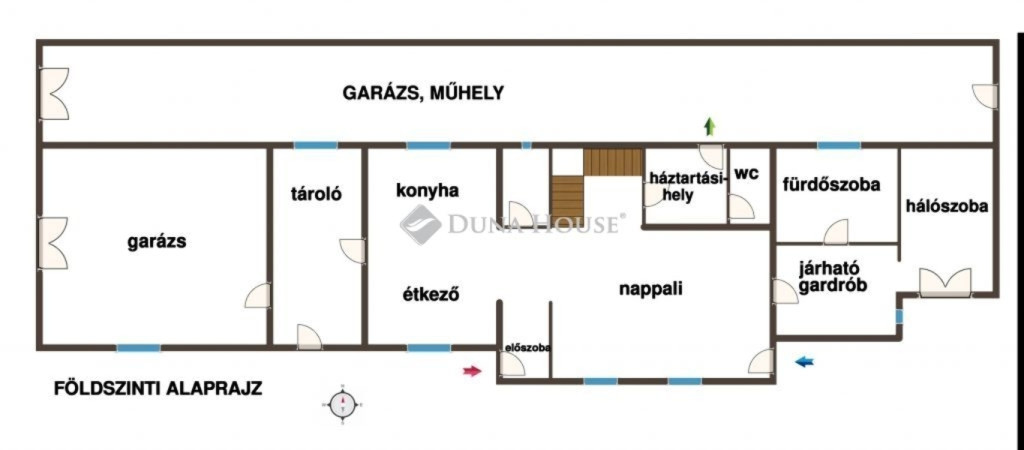 Az ingatlan különlegessége továbbá a ház oldalához hozzáépített, impozáns méretű, 28 méter hosszúságú 112 nm-es garázs, amely elektromos garázsajtóval felszerelt, és méretéből adódóan nemcsak több jármű tárolására alkalmas, hanem kiváló lehetőséget biztosít csendes tevékenységű műhely, vállalkozás vagy egyéb tárolási funkció kialakítására is.