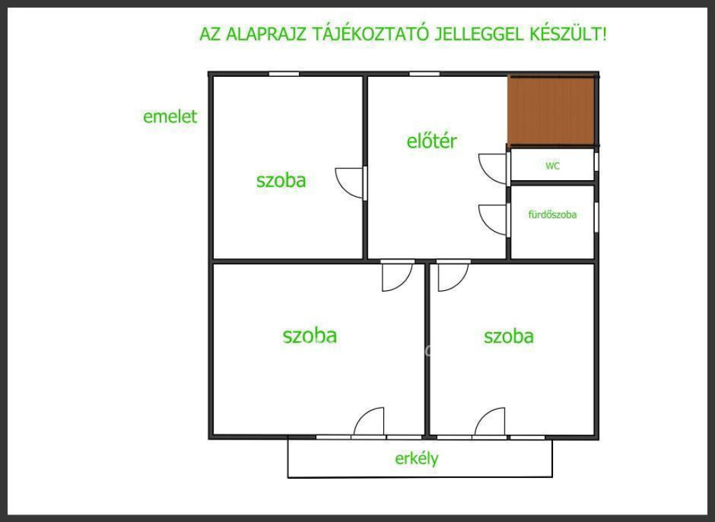 Az tetőtér helyiségei: 3 szoba, előtér, fürdőszoba, Wc és 11 m2-es erkély.