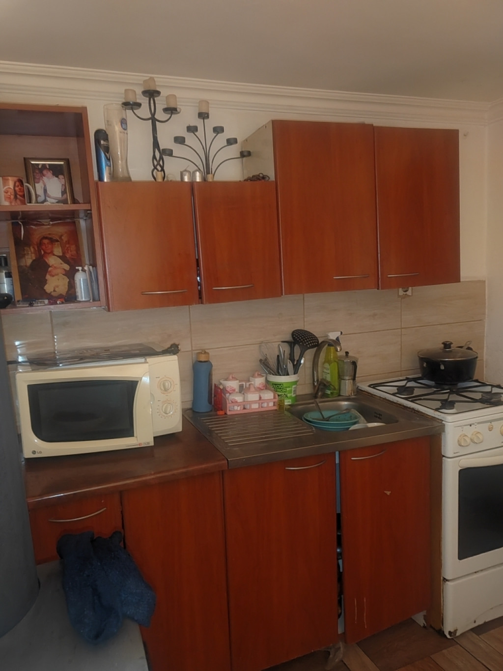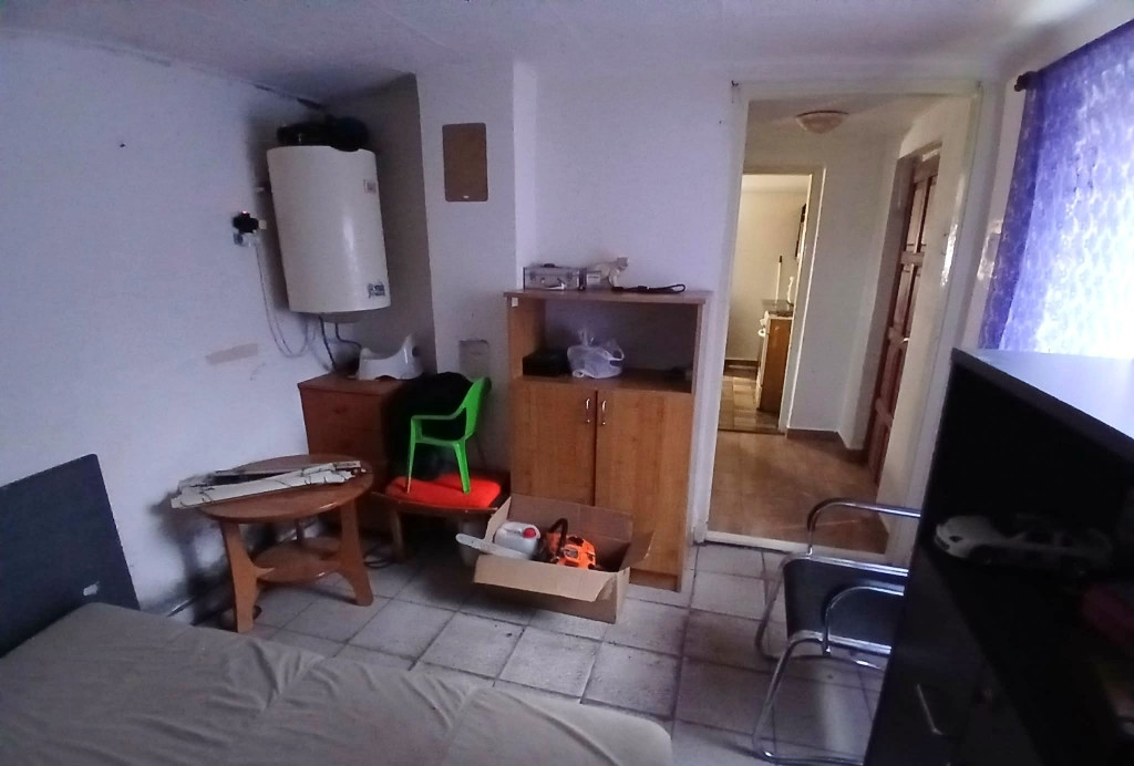 A külön bejáratú szoba padlózata beton. Szükség esetén egybenyitható a lakás többi részével.