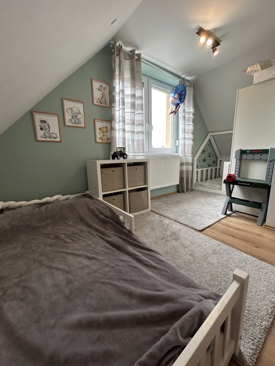 A telek füvesített, itt öntöző rendszerrel, robot fűnyíróval. Van egy kis konyhakert is, játszótér, filagória is. Ezt látni kell! Előre egyeztetett időpontban megtekinthető, akár hétvégén is!