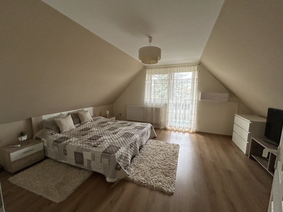 A 110 nm-es ház 1990-ben épült, cserép tetős, 2019-ben voltak a felújítások, így nagyon kicsi a fentartási költsége: külső hőszigetelés, 3 rétegű hőszigetelt műanyag nyílászárók, belső nyílászárók, új vizes blokkok mindkét fürdőszobában, egy hűtő-fűtő klíma, kondenzációs gáz, és vegyes tüzelésű kazán, tehát 3 fűtési lehetőség van! Az elektromos hálózat réz vezetékelésű.