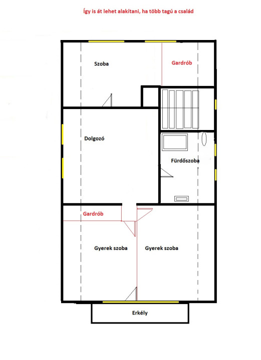 Az épület tartalmaz: az első szinten előszoba, tágas étkező konyha, kamra, itt egy részen a mosókonyha, nagy nappali, kádas fürdőszoba WC-vel, és a házon belül is le tudunk menni a pincébe. A felső szinten egy zuhanyzós fürdőszoba WC-vel, dolgozó rész, egy szoba, és egy nagy szoba erkéllyel. Ez akár ketté választható igény szerint. Már minden modernizálva van az ingatlanban, nagy költség és munka volt, így már ha a szoba számot szeretné növelni, ez már kis költség!