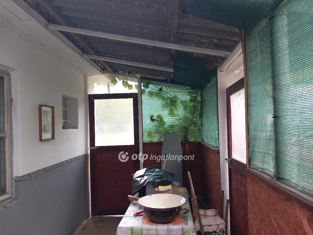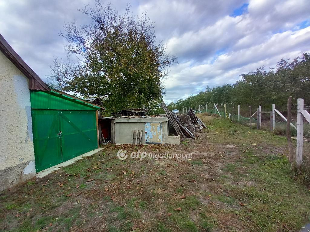-a telken könnyűszerkezetes garázs, magas beton alap pincével valamit egy fóliaház is található