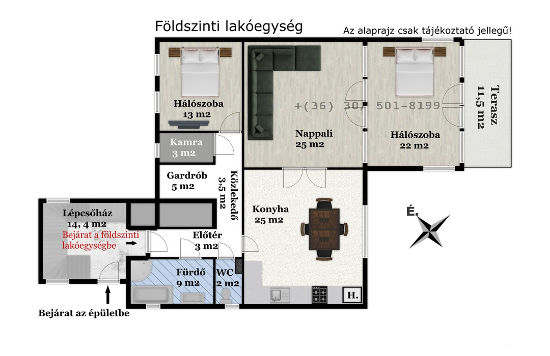 Kialakításának köszönhetően — külön mérhető közművekkel — kiváló választás nagycsaládoknak vagy kétgenerációs együttélésre, hiszen több generáció is kényelmesen elfér az ingatlanban.