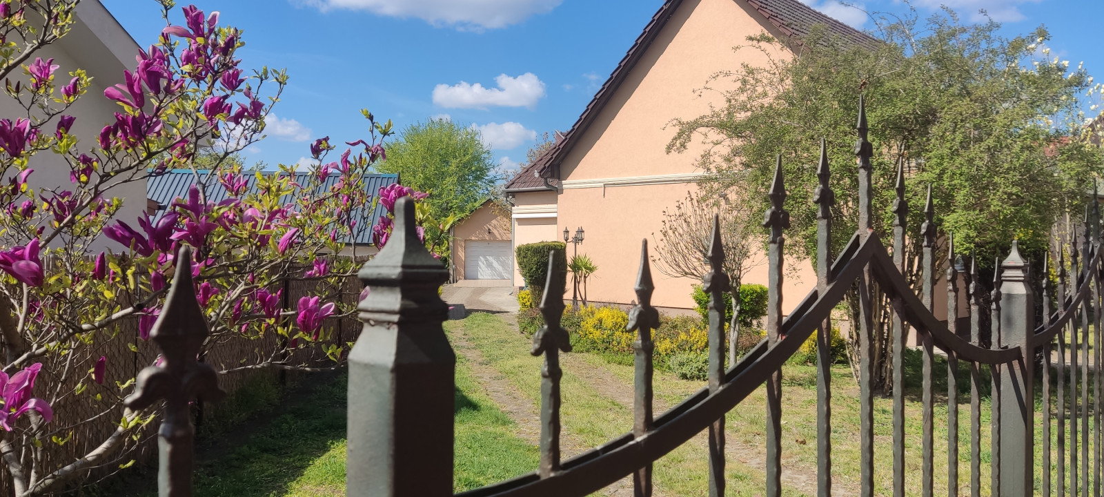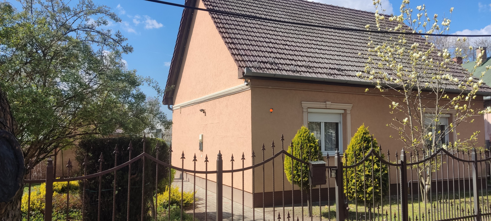 Debrecen Csapókert Falógerben Belvároshoz közeli részsen 2003-ban kialakított 107 m2-es 3 szobás étezőkonyhás ház nagy fürdőszobával és 30 m2 garázzsal 10 m2 tárolóval parkosított telken eladó. A ház 38 cm téglából épült 5 cm szigetelésel hőszigetelő vakolattal. Amerikai tipusú viszont az emelet elő van készítve tetőr beépítésre. Csendes mégis boltokhoz és tömegközlekedéhez közeli elhelyezkedésű. Aki szereti a csapókertet, akkor a leg elittebb részen fog lakni. Extrák: spájz, külön kézmosós wc, kandalló, furt kutas öntözés, 30 méter utcaronti kovácsolt vas kerítés, gyönyörű növényzet a kertben.