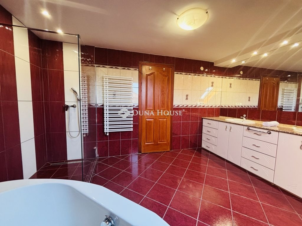 - a ház duplakomfortos: a földszinti fűrdőszobában : wc+ zuhanyzó, amíg a fentiben egy sarokkád és egy zuhanyzó található, emellett az emeleti szinten egy külön helyiségben egy wc és egy bidé került kialakításra