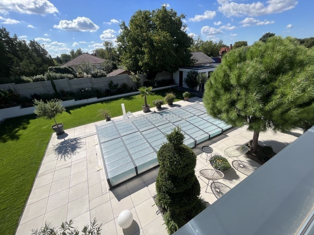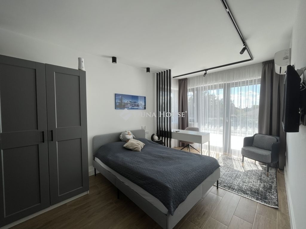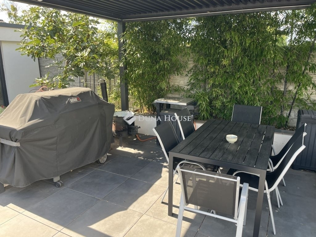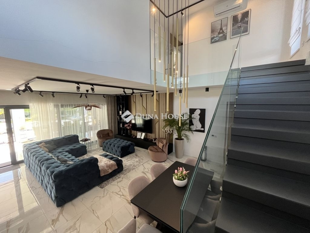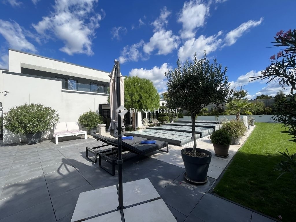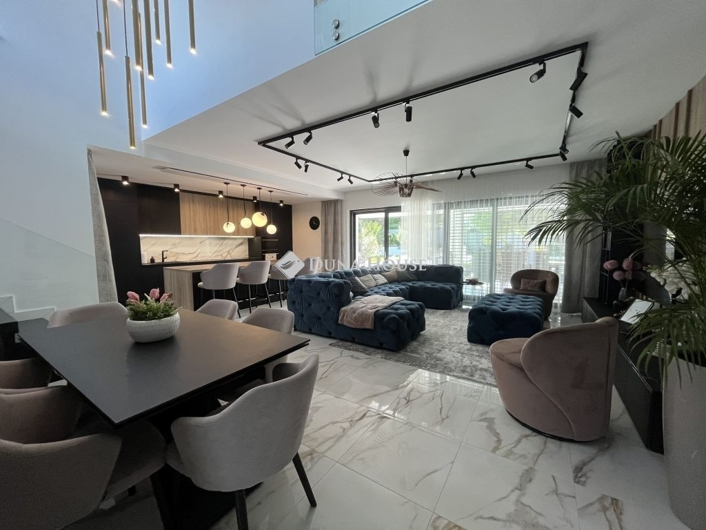MINIMALISTA STILUSÚ PENTHOSE HÁZ !Eladásra kínálunk egy 2022-ban épült, napfényes, téglaépítésű családi házat a csendes kertvárosi övezetben fekvő Lenc telep kedvelt részén. A modern, minimalista stílusban megálmodott ingatlan a legújabb technológiai megoldásokkal, köztük hőszivattyús fűtési rendszerrel van felszerelve, ami egész évben biztosítja az otthon melegét és a környezettudatos energiagazdálkodástEz az ingatlan tökéletes választás lehet azok számára, akik egy modern és elegáns otthont keresnek csendes, zöld környezetben, de nem akarnak lemondani a város közelségének kényelméről sem. Összességében egy kiváló élettér, ahol a nyugodt pihenés és a mindennapi élet praktikumai tökéletes harmóniában ötvöződnek.Az otthont adó kertvárosi övezet nyugodt, csendes környezetet biztosít lakói számára, miközben a belváros könnyedén és gyorsan megközelíthető, így a mindennapi élet szükségleteinek kielégítése nem okoz gondot. Az autópálya csupán 10 percre található, ami kiváló hír azok számára, akiknek fontos az ország más részeibe való gyors hozzáférés.Az otthon nem csak a funkcionalitásáról és magas színvonalú technikai felszereltségéről ismert, hanem tervezésénél nagy hangsúlyt fektettek a kényelem és a pihenés lehetőségére is. A hangulatos, gondozott kert, ahol különleges növényzet vonzza a tekintetet, ígéretes helyszín családi és baráti összejövetelekre. Az ingatlan területén található, saját wellness részleg, beleértve az úszómedencét is, mindennapjainkba csempész luxust és felfrissülést.Az ingatlanban található összes bútor a vételár részét képezi.Extrák: Wellness központ: 8 x 4 x 1,5 méteres, ellenáramoltatós, 10 kW hőszivattyúval fűtött és fedett medence, szauna, fitnesz-terem és pihenő sarok. Grillezőterasz, melyet 3x4 méteres alumínium pergola fed be, elektromosan mozgatott lamellákkal és ledes világítótestekkel. Ajax okos riasztórendszer, távoli eléréssel és vezérléssel. HD felbontású kamerával szerelt kaputelefon. HD felbontású és éjjellátó biztonsági kamerarendszer, 8 db kamerával, melyek távolról vezérelhetőek és ellenőrizhetőek. Kétállásos garázs, szekcionált és hőszigetelt ajtóval, mobilról nyitható, elektromos úszókapuval. A garázs előtt 40 nm fedett kocsibeálló található, így összesen 4db autó elhelyezése megoldott az ingatlan kerítésén belül. 71 négyzetméteres, nyitott, panoráma tetőterasz. Okosotthon rendszerek megvalósításához csillagpontos hálózat teljesen kiépítve és kábelezve. Kerti tárolóban található egy mosdó / wc, a medence gépészeti helyisége és egy 20 nm tárolóhelyiség. A kerti és kültéri világítás minden elemét lakberendező tervezte és kiviteleztette, természetesen ledes világítótestekkel. Esztétikusan és harmonikusan parkosított kert, 8 körös automata öntözőrendszerrel és csepegtetővel.Műszaki tartalom: A használati melegvízhez és a fűtéshez dedikált, 16kW hőszivattyú lett beépítve (villanyórától külön kiépített kábelen), amihez 300 literes melegvíz-tároló és a fűtéshez külön 190 literes puffertartály tartozik. BWT vízlágyító rendszerrel kezelt víz. Padlófűtés található minden helyiségben és a téliesíthető teraszon is, a legmodernebb, wifi-s, okos termosztátokkal szabályozva, így minden helyiségben a hőfokok külön állíthatóak. 3 szeparált fűtési kör, külön fűthető az emelet és a földszint két része. 3*32 Amper elérhető az ingatlanban. Nagy teljesítményű, 12,5 kW napelemes rendszer a lapostetőn, Solplanet inverterrel szerelve, oda-vissza mérő villanyórával. A ház elmúlt éves használata alapján teljesen passzív a ház energiafogyasztása, 0 az áramköltsége. Az ingatlan energetikai besorolása AA++. Gáz nincs bekötve egyáltalán, a konyha teljesen elektromos Whirpool (6th Sense) gépekkel van szerelve (még garanciális mindegyik). 6 db inverteres hűtő-fűtő klíma. Berg System gyártmányú, 3 rétegű, melegperemes, 7 légkamrás alumínium nyílászárók, amelyeken mindegyiken motoros aluredőny található. Hőszigetelt, szekcionált garázskapu és elektromotoros mozgatású úszókapu. Fűtött terasz, összecsukható (harmónika) - Berg system gyártmányú - teraszajtókkal, melyek telente teljes értékű lakórésszé varázsolják a teljes teraszt. A kerti tároló, valamint a medence gépészete és fűtése külön áramellátással rendelkezik. Minden világítótest és lámpa az ingatlanban kívül és belül ledes.Szerkezet: Pillérvázas tartószerkezet, monolit vasbeton gerendákkal. Porotherm 30 N+F téglából készült falak. Szigetelés a falakon 20 cm (hungarocell), vakolás helyett gipszkartonozással takarva. Aljzatokon 20 cm lépésálló szigetelés. Födémeken 30 cm lépésálló szigetelés.Szeretné megismerni ezt a különleges ingatlant forduljon hozzám bizalommal.