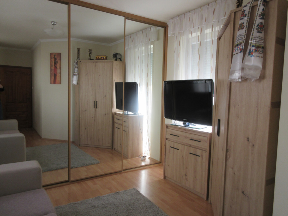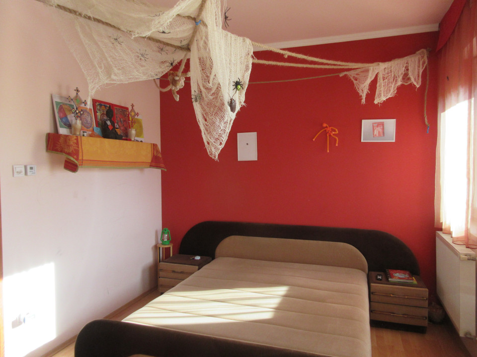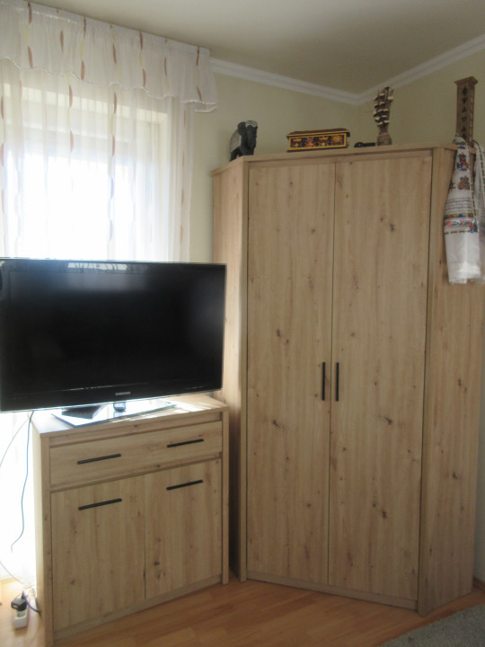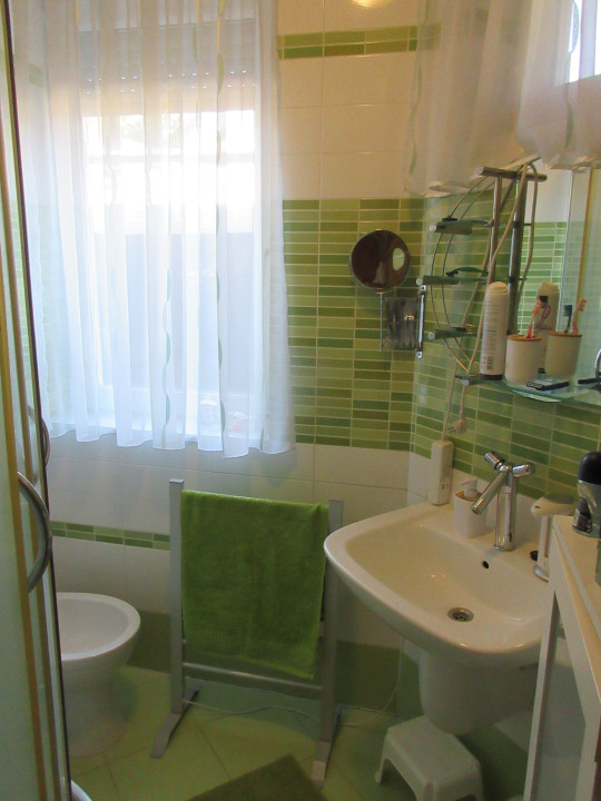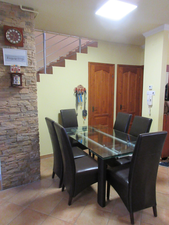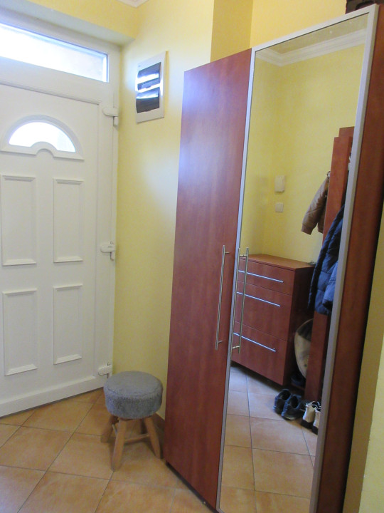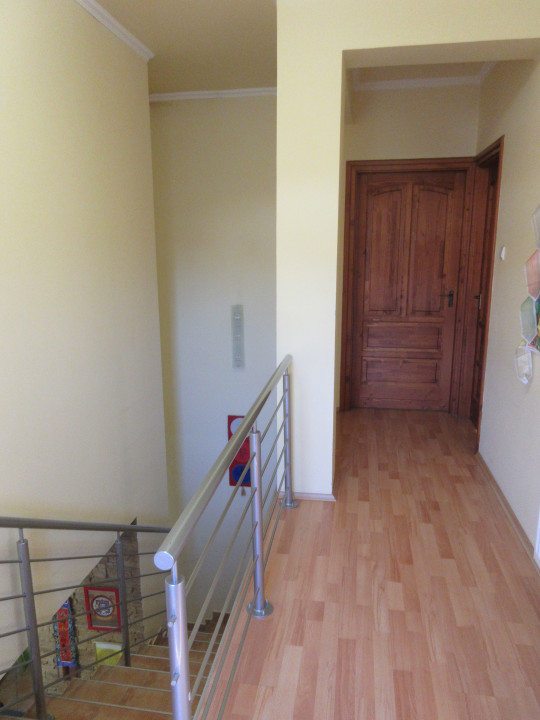 Helyiségei: A földszinten tágas előszoba, amerikai konyha, étkező, nappali, fürdőszoba tusolóval , bidével ,toalett külön helyiségben, nappaliból nyíló terasz (15nm), kamra, kényelmes dupla garázs (30nm) mely tárolásra is alkalmas . Az emeleten 3 külön nyíló szoba , közlekedő, fürdőszoba káddal, toalettel, bidével, 2 erkély( 5,10nm) mely a szobákból nyílnak . A szobák laminált parkettával a többi helyiség járólappal burkolt.