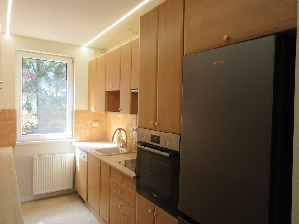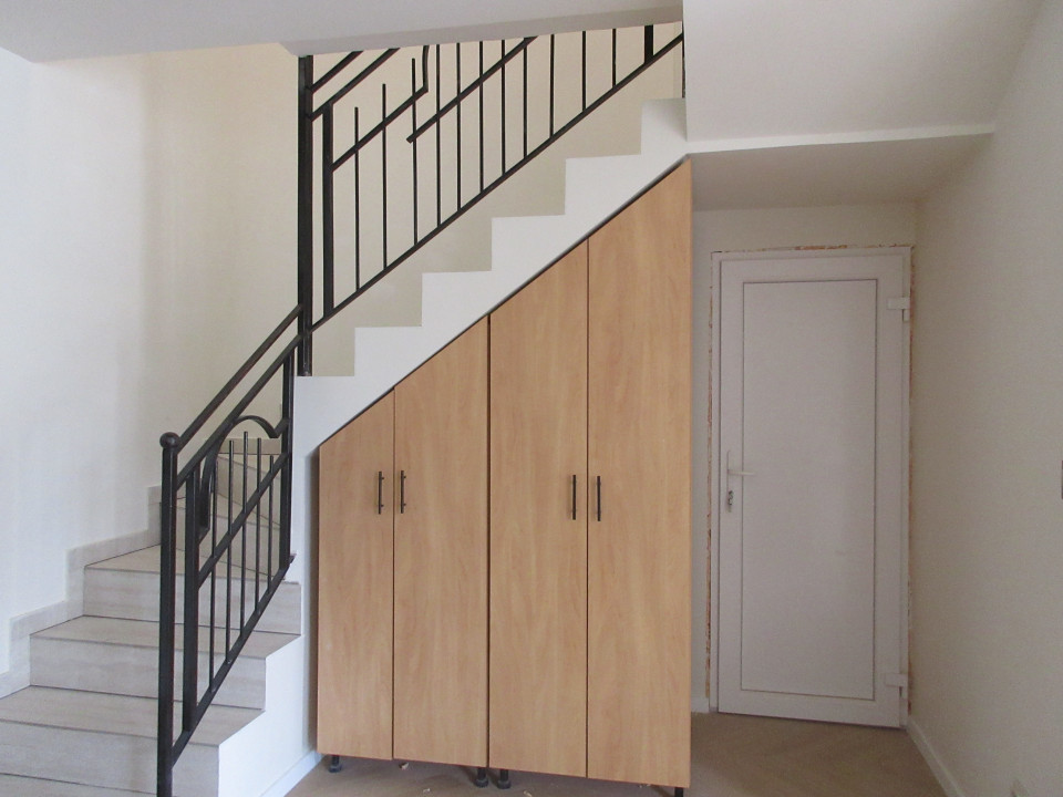 Helyiségek elosztása: a földszinten tágas nappali és étkező, konyha gépesített konyhabútorral , előszoba és közlekedő, fürdőszoba tusolóval és toalettel, teraszkapcsolattal.