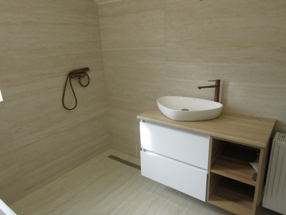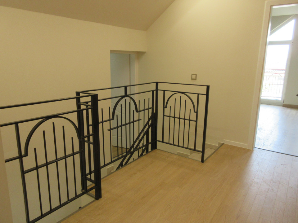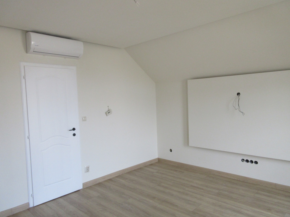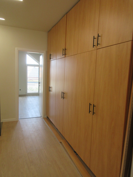 Emelet: 2+1 szoba, 2 szobához saját gardrób, fürdőszoba, káddal és tusolóval, külön toalett kézmosóval, közlekedő gardróbfallal, erkély.