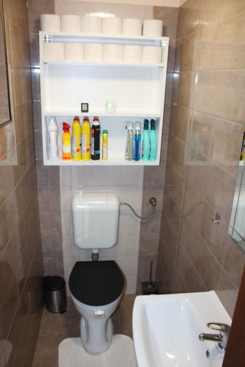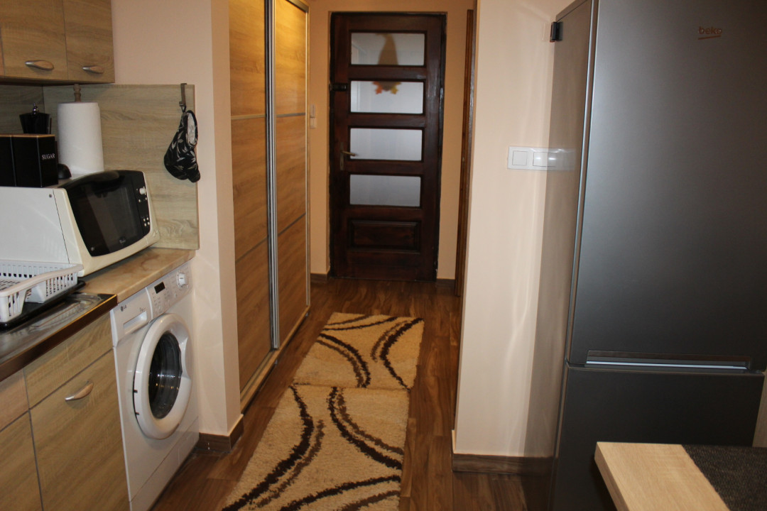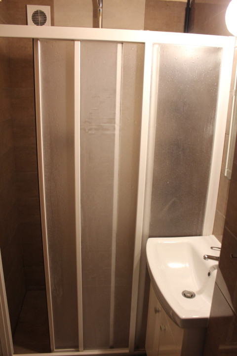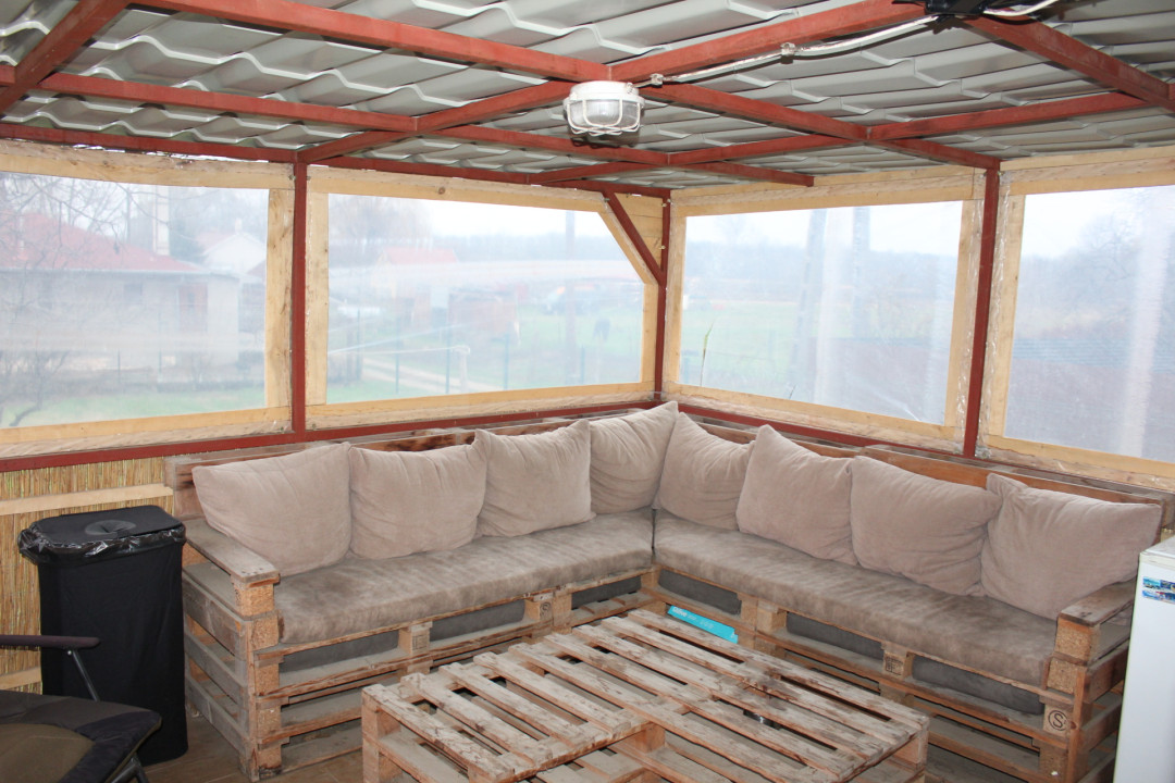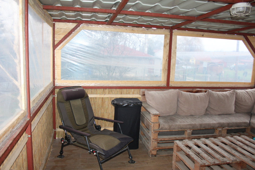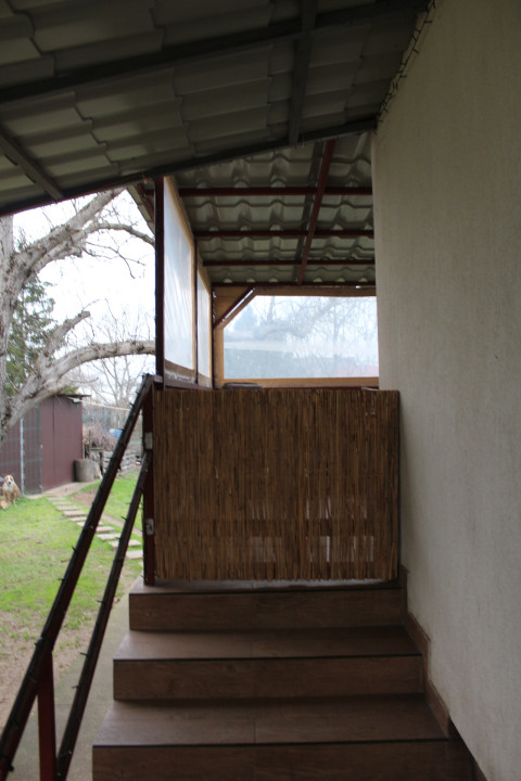Helyiségei : előszoba, folyosó + konyha, étkező + zuhanyzós fürdőszoba + wc + hálófülke + kb 16 m2-s fedett terasz.