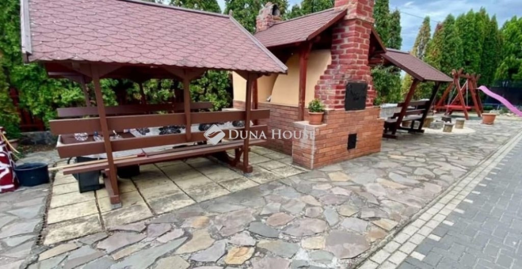 Az udvar jól rendezett, ahol egy elektronikus kapu, egy filagória, egy kemence és egy terasz is helyet kapott, így a szabadidő kellemes eltöltésére is van lehetőség. A kocsi tulajdonosok örömmel fogadják hogy a garázs mellett 2 fedett kocsi beállót, amely megoldást kínál az autók biztonságos parkolására.
