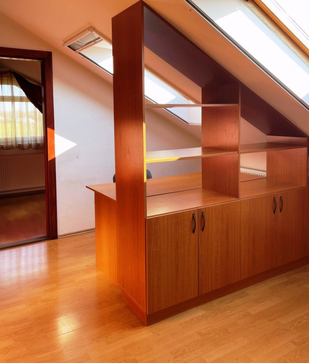 Debrecen Veres Péter kertben nappali és 4 szobás, 2 fürdőszobás szélső sorház garázzsal és 350 m2 diszkrét telekkel eladó. Energiahatékonyságot 5 KW napelem, kondenzációs kazán és a 15 cm szigetelés adja. Azonnal költözhető, sok beépített szekrénnyel rendelkezik. A földszinten is van hálószoba.