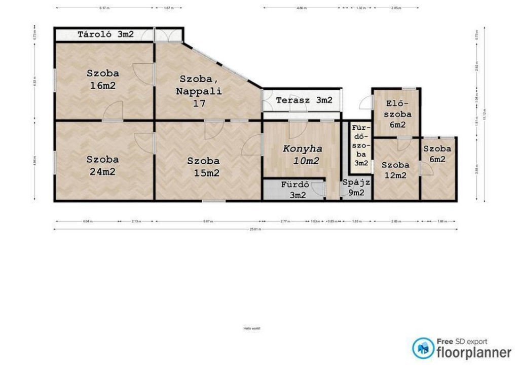 6 szoba ebből: 1 nappali jellegű és 5 különálló szoba