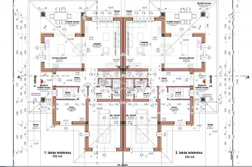 RING LIGET LUXUS LAKÓPARK AZ ERDŐ KÖZELSÉGÉBEN !MAGAS MŰSZAKI TARTALOMMAL ÉPÜLŐ ÖNÁLLÓ CSALÁDI HÁZAK ÉS IKERHÁZAK ELADÓAK! .Rendkívüli lehetőség Diósdligeten, Érd és Törökbálinttal határos új részen, erdő közelségében.. Most Öné lehet idén bevezető áron egy nettó 179,35 m2-es 2 szintes minőségi ikerház. Az ott megépülő új ingatlanokat egy saját térkövezett, sorompóval lezárt utcáról lehet majd megközelíteni.Tágas, világos terek köszönhetően az egyedi jó méretű nyílászáróknak.Hozzá tartozó telek mérete 532 m2.Az ingatlant a 2024-es év kedvezményes feltételeivel is megtudja vásárolni, az építkezés céges.Foglalja le már most leendő otthonát 10%-al. Az építkezés elkezdődött , jelenleg szerkezetkész állapotnál tart, így saját ízlése és igénye szerint választhatja ki a ház belső kinézetét. Amennyiben egyedi igényei lennének az elosztással kapcsolatban a kivitelező rugalmas a változtatásokra.Elosztását tekintve: Földszint:- 1 állásos garázs- kamra - gardrób helyiség- előszoba- külön mellékhelyiség- 1 hálószoba saját fürdőszobával- tágas és világos amerikai konyhás nappali fedett teraszkapcsolattalEmelet:- jó méretű szülői háló, saját fürdővel- 2 egész méretű hálószoba- 1 fürdőszoba és 1 külön mellékhelyiség- háztartási helyiségA lakások 2x30cm vastag Porotherm X-therm falazó elemekből épülő teherhordó falazattal érintkeznek, mely falak között légrés kerül kialakításra. Ez által semmilyen hang nem fog áthallatszódni a szomszéd épületből.Műszaki adatok:- 30-as Porotherm X-therm tégla falazat, 10 cm tégla válaszfalak- 20 cm homlokzati szigetelés- Hőszivattyú fűtés 300 literes indirect tárolóval- Minden helyiségben padlófűtés- Tetőn korcolt lemezfedés - 3 rétegű 5 légkamrás nyílászárók- Riasztó, kamera, napelem előkészítés- Szaniterek - Hideg/meleg burkolatok ( 10 000 Ft/m2 meleg: 10 000 Ft/ m2 )- Beltéri ajtók ( 100 000 Ft/db )- 5 ponton záródó bejárati ajtóEzek mind kiemelkedő minőségben és az átlagnál magasabb áron választhatóak. Árlista tőlem kérhető.Az építkezés megtekintése után minden a házzal kapcsolatos dokumentáció rendelkezésre áll.EXTRÁK: - Ház homlokzatán díszkő burkolat- Térkövezés- Elektromos alumínium redőnyök - Mennyezet hűtés- Vízlágyító berendezésKörnyék rendezett, csendes, minden perceken belül elérhető autóval.Várható átadás: 2025 MárciusTovábbi információkért hívjon bizalommal.
