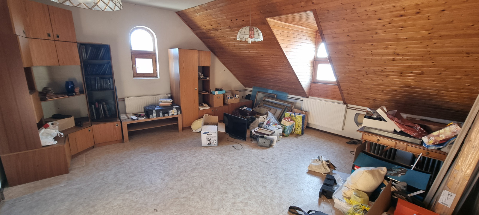 A földszint teljesen berendezett jelenleg is lakott. A tetőtér egy része befejezés előtt áll.