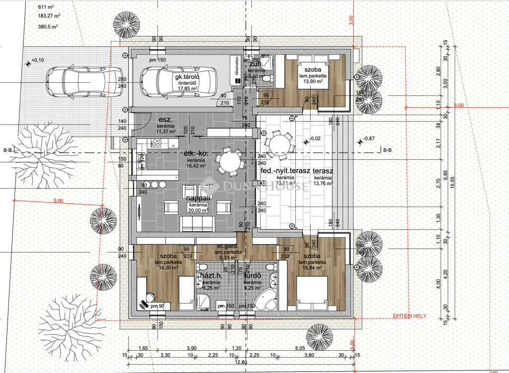 EGYEDI HÁZ, CSEND, IMPOZÁNS KÖRNYEZET ! Diósdliget keresett részén eladó egyedi tervezésű új építésű otthon !Az ingatlan hasznos nettó lakótere garázzsal 132,29 m2 + 26 m2 terasz .Telek mérete 611 m2.Az építkezés hamarosan kezdetét veszi, így végig követheti az építkezés folyamatait.Elosztását tekintve:1 állásos garázs, előszoba, 3 jó méretű szoba , tágas amerikai konyhás nappali részben fedett 26 m2-es teraszkapcsolattal, 2 fürdőszoba, háztartási helyiség, gardrób helyiség. A helyiségek napfényesek, köszönhetően a jó tájolásnak és a jó méretű nyílászáróknak. Az ház aszfaltozott utcában található, rendezett házak környezetében.Műszaki adatok:- 30-as Porotherm tégla- 15 cm homlokzati szigetelés- Hőszivattyú fűtés, minden helyiségben padlófűtéssel- 3 rétegű 6 légkamrás nyílászárók- 1 autónak térkövezett beálló- Riasztó előkészítése- szaniterek- hideg/meleg burkolatok ( 8 Ft/ m2 )- beltéri ajtók 80 000 Ft/db- bejárati ajtó 250 000 Ft-igEXTRÁK: - Aluminium elektromos redőny- 4 db klíma készülékEzek mind kiemelkedő minőségben és az átlagnál magasabb áron választhatóak. Árlista tőlem kérhető.Az építkezés megtekintése után minden a házzal kapcsolatos dokumentáció rendelkezésre áll. Jelenleg alap készültségnél tart az építkezés.Vállalkozó megbízható, rugalmas, rengeteg referencia munkával rendelkezik, amit közösen megtudunk tekinteni a nagy döntés előtt.Tömegközlekedés, iskola, óvoda, bevásárlási lehetőségek perceken belül elérhetőek.További információkért hívjon bizalommal.Várható átadás: 2026 Tavasz