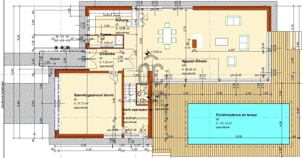• automata öntözőrendszerrel ellátott, parkosított kert