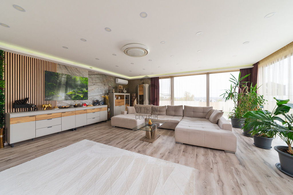 Ennek a két szintes ingatlan alapterülete 290 nm, míg a telek mérete 973 nm és rendkívüli panorámával rendelkezik. Így bőséges helyet biztosít a családi élethez és a kikapcsolódáshoz.