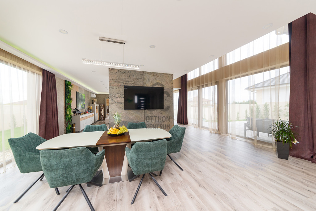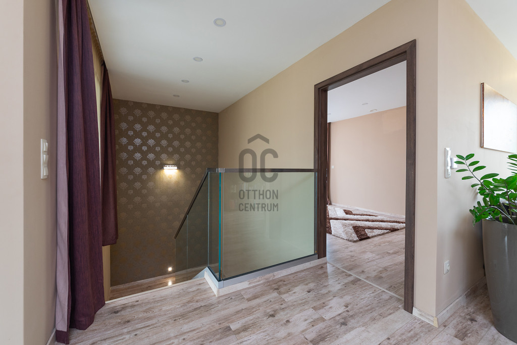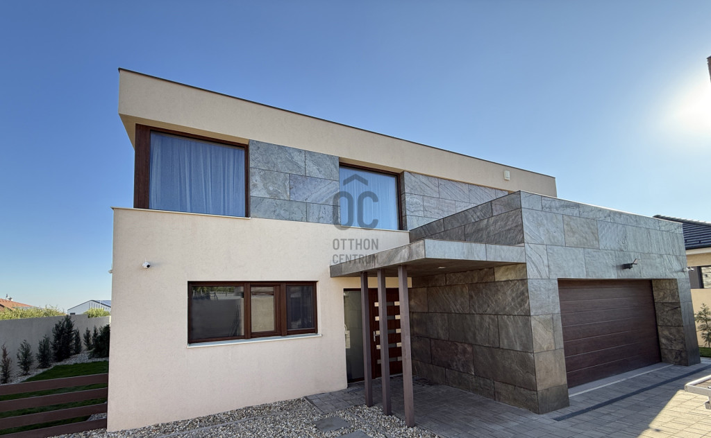 Építészetileg egyedi megoldásokkal, letisztult formavilággal, a 2019-ben épült otthon tágas, világos terekkel, nagy üvegfelületekkel rendelkezik, így lenyűgöző panoráma biztosítja új tulajdonosa kényelmét. Ideális választás akik egy modern és luxus otthonra vágynak. Ez a családiház nem csupán egy lakóhely, hanem egy életstílus, ahol a város közelsége és a természet harmóniája találkozik.