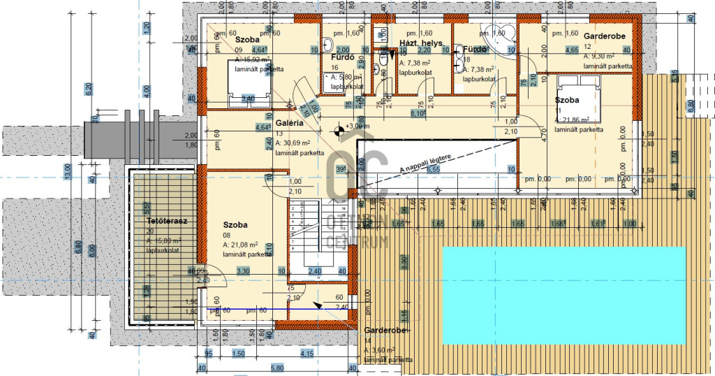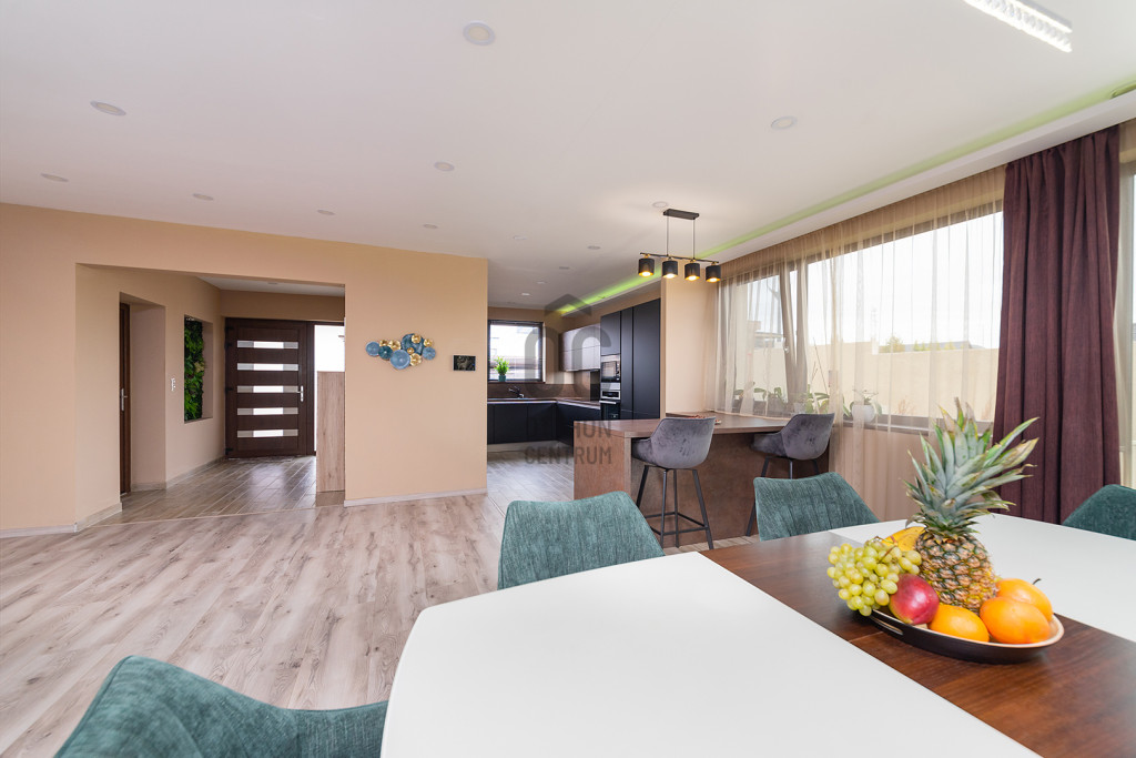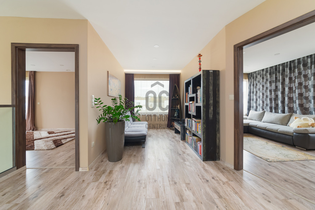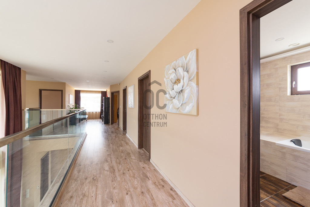 A házban négy tágas szoba található és két fürdőszoba szolgálja a kényelmet, így a családtagok számára mindig elegendő hely áll rendelkezésre a napi rutinhoz. Az egyik szobához tartozó 15,8 nm-es terasz tökéletes helyszín a reggeli kávézáshoz vagy a baráti összejövetelekhez, ahonnan csodás panoráma nyílik a környező tájra.