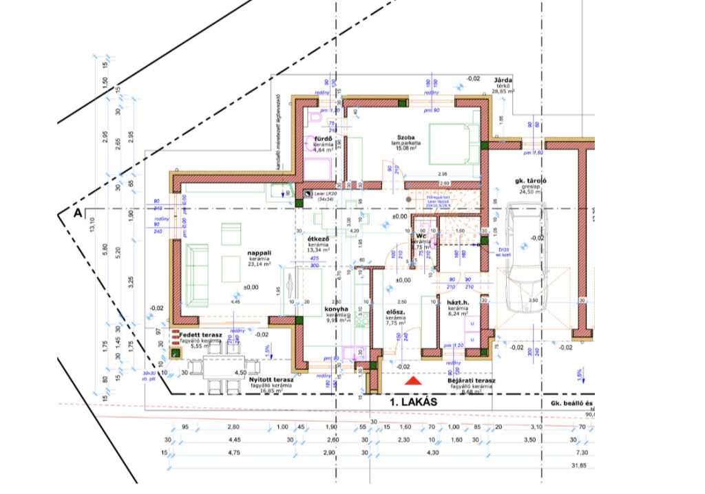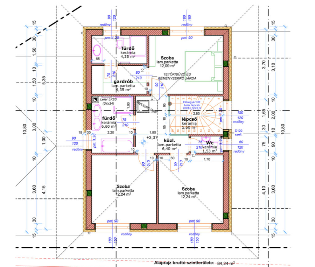 • Dupla, légréssel elválasztott falazat az ikerházrészek között (2×30 cm)