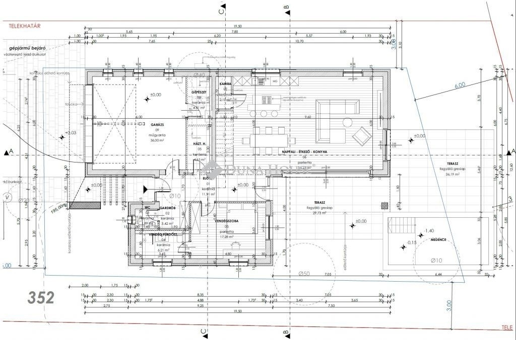 DIÓSDLIGETEN, EGYEDI TERVEK ALAPJÁN ÉPÜLŐ CSALÁDIHÁZ!!Nem tucat ingatlan, hanem átgondolt, egyedi tervek alapján kivitelezésre kerülő, prémium minőségben megépített, sok extrával felszerelt otthon. Ha ilyet keres, akkor ez a ház megfelelő választás lehet.Diósdliget kiemelt területén, ősfás környezetben épül ez a 216nm lakóterű, (+ 36nm garázs,+ teraszok), belső kétszintes (a felső szint NEM tetőtér, teljes értékű alapterületű helyiségek) családiház hőszivattyús fűtésrendszerrel, az alábbi kialakítással:a földszinten egy tágas, benapozott amerikai konyhás nappali (58.23nm), egy vendégszoba saját fürdővel, kamra, vendég wc és egy gardrób, ami a bejáratnál lesz kialakítva, a hazatérő családtagok és vendégek kényelmére. Az emeleten egy szülői háló, melyhez saját fürdőt terveztek, egy besétálós gardrób szoba, további két hálószoba,külön-külön fürdőszobákkal és egy tágas közös tér tartozik. Mind a nappalinál, mind pedig az emeleten 30-40nm-es teraszok épülnek.Parkolni 36nm-es garázsban 2 autóval lehet, a garázs mögötti részben a gépészeti helyiség és háztartási helyiség kerül kialakításra.A kert 700nm-es, ami igény szerint gyepszőnyeggel vagy műfűvel lesz terítve, a vételár egy medence kialakítását is tartalmazza.Extrák a teljesség igénye nélkül: az átlagosnál nagyobb alapterületű hálószobák, szinezett ablakok, zsaluzia, padlófűtés, prémium minőségben választható burkolatok,mennyezet hűtés.A belső elrendezés a kivitelezővel történő egyeztetéssel még módosítható, ill. a felszereltség igény szerint kiegészülhet a leendő tulajdonos igénye szerint.A ház kulcsrakész ára 399 millió forint, várható átadása 2027 tavasza.További információkért hívjon a megadott telefonszámon.FAMILY HOUSE IN DIÓSDLIGET, BUILT BASED ON UNIQUE DESIGNS!!Not a mass-produced property, but a thoughtfully designed home built according to unique plans, constructed in premium quality and equipped with many extras. If this is what you are looking for, this house may be the right choice.This family house, with 216 sqm of living space (+ 36 sqm garage, + terraces), built on two internal levels (the upper floor is NOT an attic, but full-value rooms with proper floor area), will be constructed in a prime area of Diósdliget, in an environment with mature trees, featuring a heat-pump heating system, with the following layout:on the ground floor there is a spacious, sunlit living room with an open-plan American-style kitchen (58.23 sqm), a guest bedroom with its own bathroom, a pantry, a guest WC, and a walk-in wardrobe to be created near the entrance for the convenience of returning family members and guests. On the upper floor there is a master bedroom with its own planned bathroom, a walk-in wardrobe room, two additional bedrooms each with their own bathrooms, and a spacious common area. Terraces of 3040 sqm will be built both by the living room and on the upper floor.Parking is possible for 2 cars in the 36 sqm garage; behind the garage, a mechanical room and a utility/laundry room will be created.The garden is 700 sqm, which will be covered with turf or artificial grass as desired, and the purchase price also includes the construction of a swimming pool.Extras, without claiming completeness: larger-than-average bedrooms, tinted windows, exterior blinds (zsaluzia), underfloor heating, premium-quality optional floor and wall coverings, ceiling cooling.The interior layout can still be modified in consultation with the contractor, and the equipment can be expanded according to the future owners needs.The turnkey price of the house is 399 million HUF, with expected handover in spring 2027.For further information, please call the provided phone number.