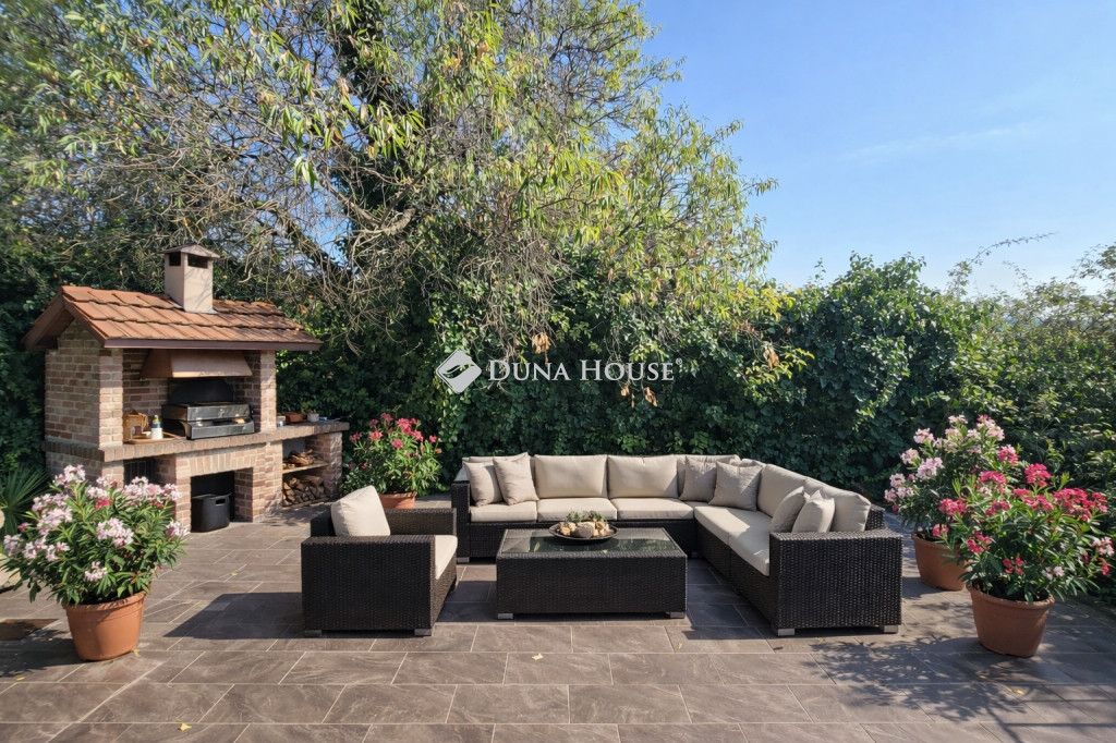 Egyéb extrák: riasztórendszer infra sorompókkal és mozgásérzékelő kamerákkal, két autóbeállásra alkalmas kapu, panorámás kilátás az emeleti szobákból