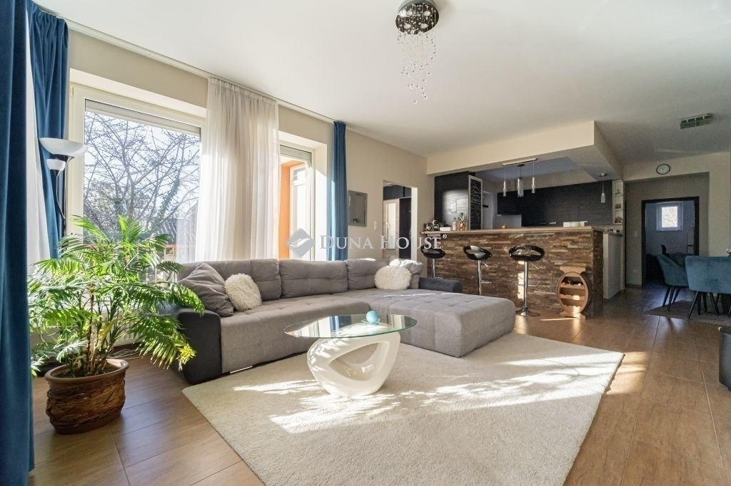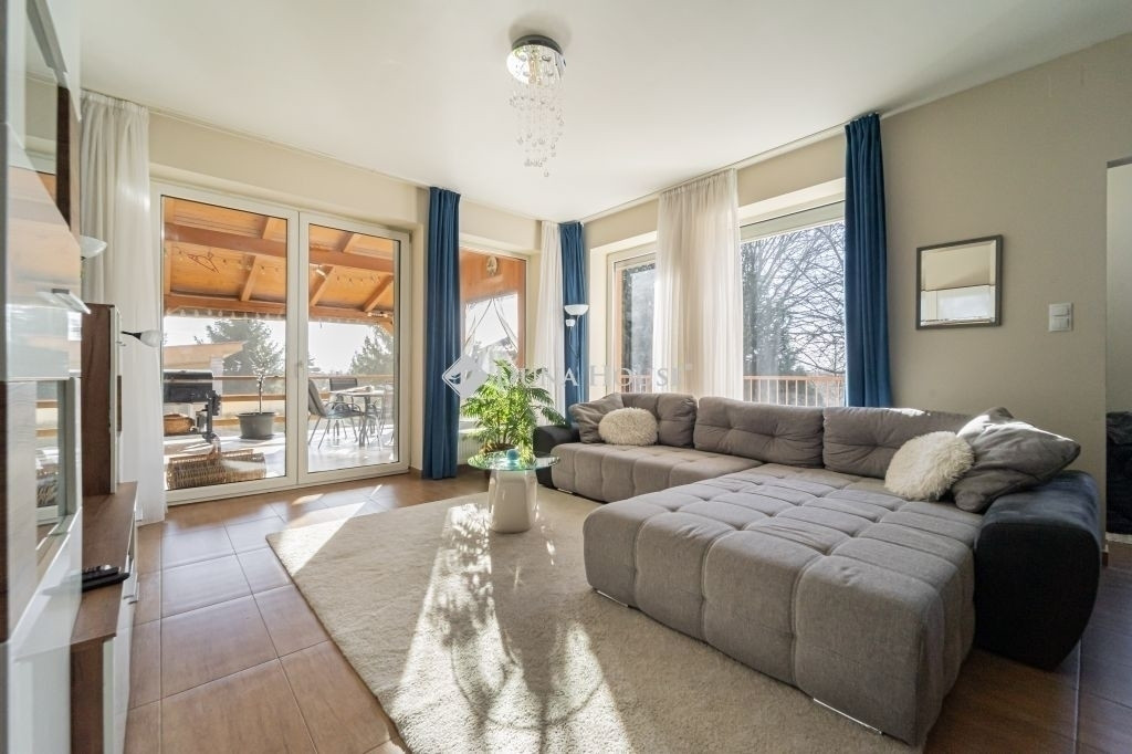 A lakótér kényelmes kialakítású: 3 különnyíló hálószoba, 2 fürdőszoba, 2 WC és egy dolgozószoba került kialakításra. A világos nappali közvetlen kapcsolatban áll a tágas, 40 m²-es terasszal, amely ideális helyszín lehet pihenésre, családi étkezésekre vagy baráti összejövetelekre.