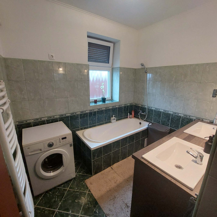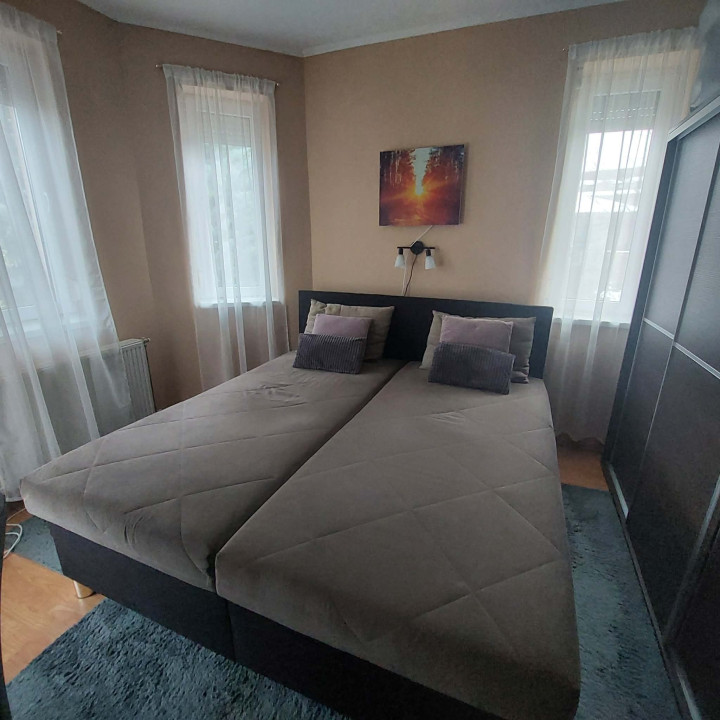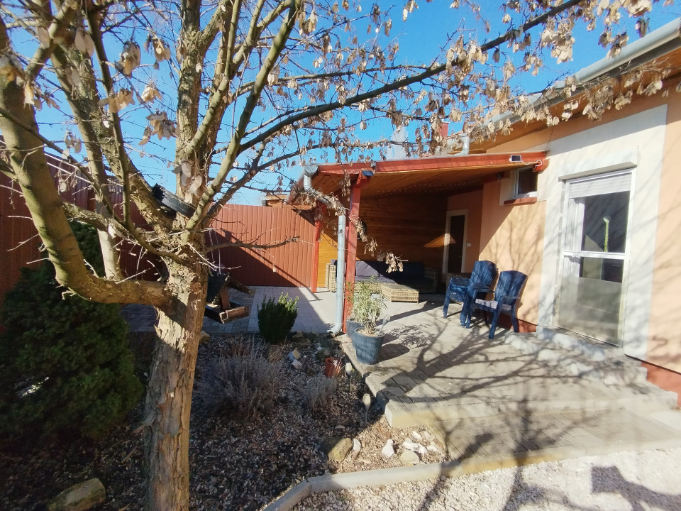 a fűtésről és a melegvízről turbós kombi gázkazán, míg a komfortérzetről 2 db hűtő–fűtő klíma gondoskodik egész évben. Garázs fűtött,16 m².