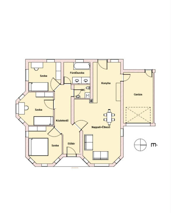 Az ingatlan amerikai konyhás nappali–étkezővel rendelkezik, amely kellemes közösségi teret biztosít a mindennapokhoz, valamint 3 külön nyíló szoba gondoskodik a családtagok privát életteréről.