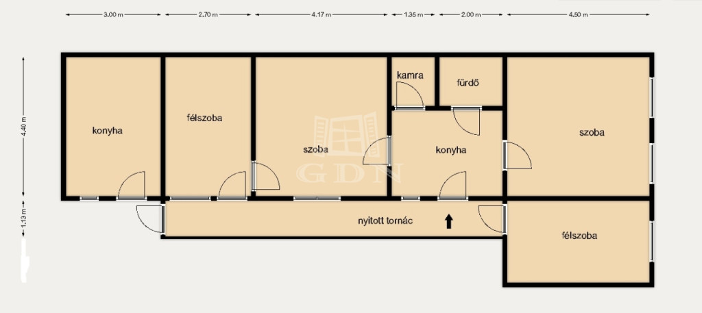 A tetőt néhány éve cserélték, viszont vízkár következtében a pince beomlott, valamint az utólag épített félszoba megsüllyedt.
