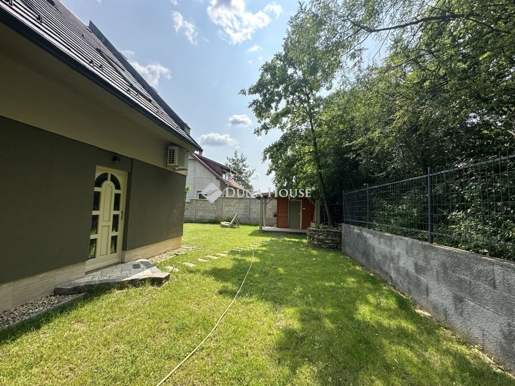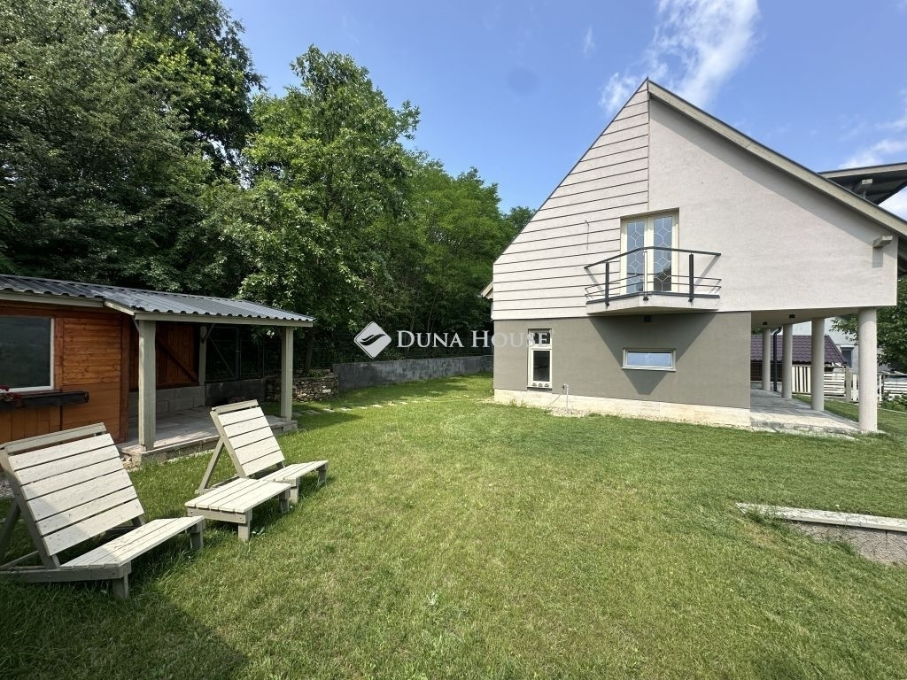 Domonyvölgy egyik legszebb részén, a festői fekvésű 2-es tónál kínálunk megvételre egy korszerű, hőszigetelt téglafalazatú (38 + 10 cm) új építésű üdülőépületet, amely lakóházként is tökéletesen funkcionál.Épületjellemzők:Földszint + tetőtér + padlástér kialakítás4 külön nyíló szoba, 2 fürdőszobaModern amerikai konyhás nappaliFedett tornác, valamint erkély a tetőtérbőlTerméskő lábazat, kiváló minőségű burkolatok és beépített anyagokFűtés és technológia:Villamos kazánról működtetett padlófűtés a földszinten, radiátoros fűtés a tetőtérbenWiFi-ről vezérelhető termosztát mobiltelefonos irányítássalLED-es, RGB kapcsolós lámpák a belső térbenKlíma, az ablakok redőnnyel és szúnyoghálóval ellátottak.5 m³-es, kétmedencés szennyvíztárolóTelek és melléképületek:Gondozott, füvesített kert 1.055 m²-en9 m²-es fa szerszám- és fatároló45 m²-es, háromállásos fedett gépkocsibeálló - a tetején napkollektorral3 db kerti csapModern utcai kerítés, elektromos kapuval, videós kaputelefonnal, beépített kukatárolóval és fedett személybejáróval Miért érdemes Domonyvölgyet választani?A Gödöllői-dombság egyik legkedveltebb kiránduló- és nyaralóhelye. A tiszta levegő, a tavak közelsége, a csendes, zöldövezeti környezet és a Budapesttől való könnyű megközelíthetőség teszi különösen vonzóvá mind állandó lakhatásra, mind hétvégi pihenésre. A környék folyamatosan fejlődik, a természetközeli, mégis komfortos életmódra vágyóknak ideális választás.